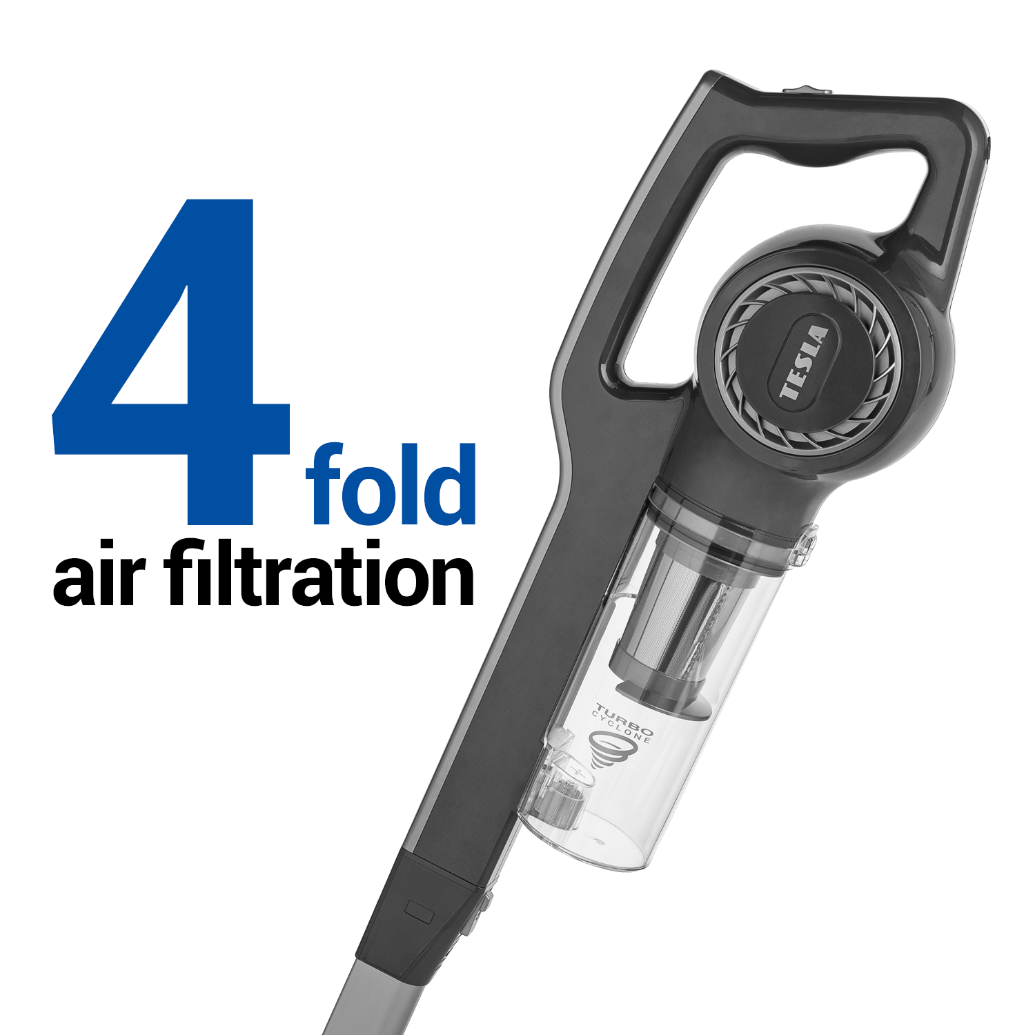 Der Staubsauger ist mit einem hochmodernen vierfachen Luftfiltersystem ausgestattet. Die Zyklon-Filtertechnologie sorgt für eine hohe Saugkraft, die die Luft im Staubsauger kontinuierlich umwälzt, um Luft und Schmutz zu trennen. Die Luft wird dann zunächst mit einem feinen Edelstahl-Primärfilter gefiltert, dann mit einem sekundären Schaumstofffilter und schließlich mit einem effizienten EPA-Filter gereinigt.