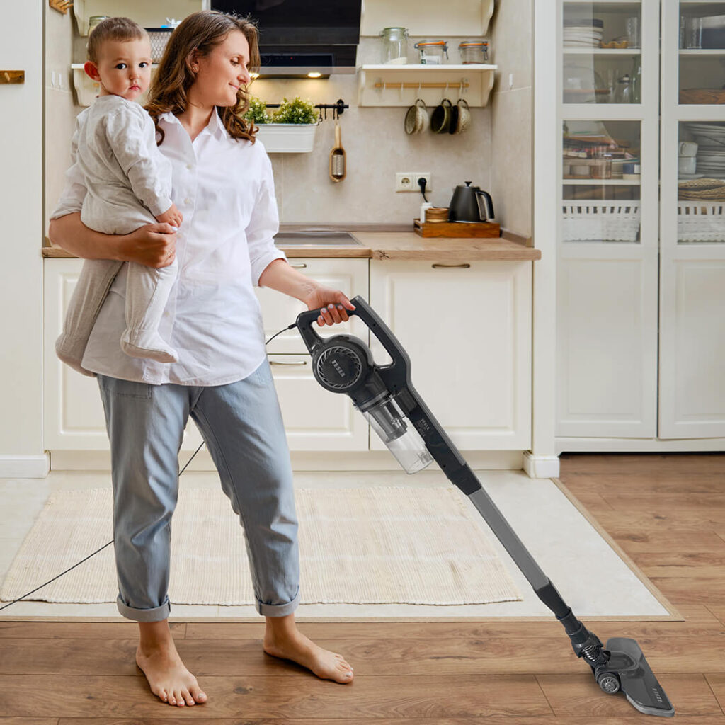 Der TESLA AeroStar T300 ist mit einem Gewicht von nur 2,2 kg ein extrem leichter Staubsauger. Da die Universal-Bodendüse nur 6,5 cm hoch ist, kommt man auch an schwer zugängliche Stellen unter Möbeln leicht heran. Sie können auch die Zimmerecken, die Fugen zwischen den Schränken und sogar den Boden unter den Möbeln reinigen. Wenn Sie mit der Reinigung fertig sind, können Sie den Staubsauger in der mitgelieferten Wandhalterung verstauen.