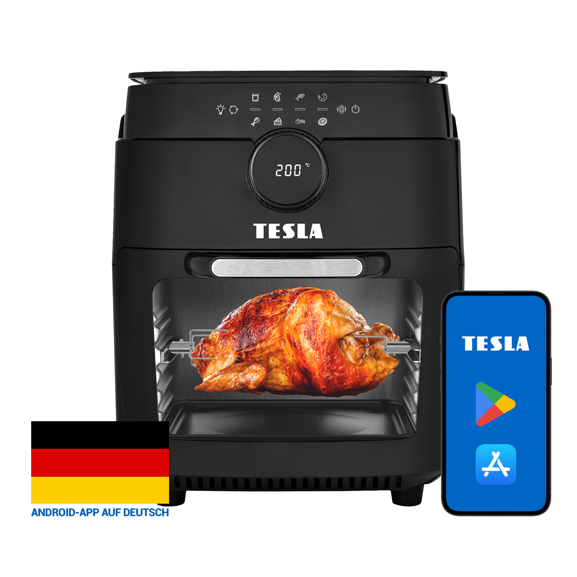 Handy-App – Steuern Sie Ihre digitale Multifunktions-Heißluftfritteuse von TESLA jederzeit und überall