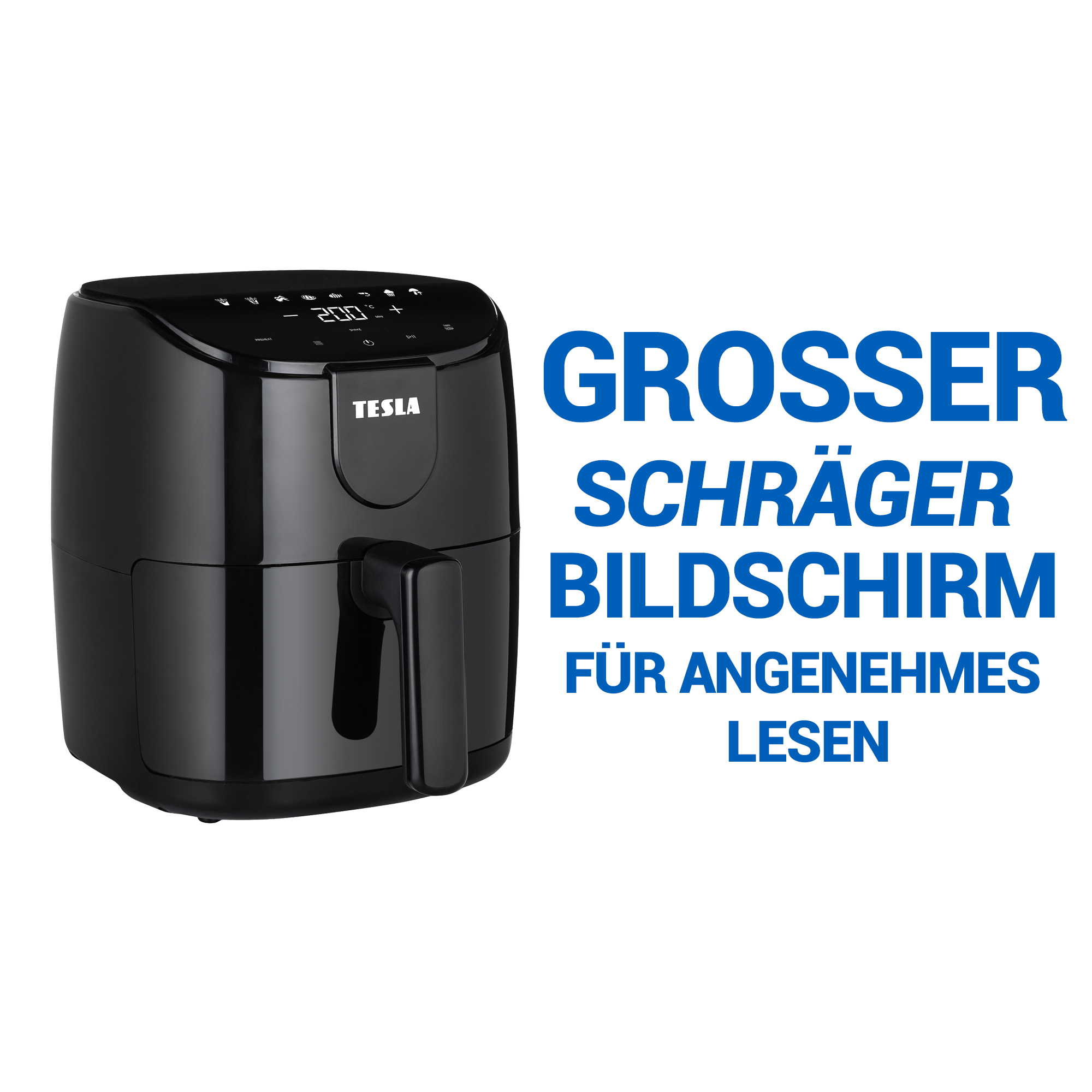Reduzieren Sie Kalorien, Fett und Karzinogene, indem Sie sich gesünder ernähren. Die neue Heißluftfritteuse von TESLA für die Zubereitung knuspriger und köstlicher Gerichte mit einem Minimum an Öl oder ganz ohne Öl.