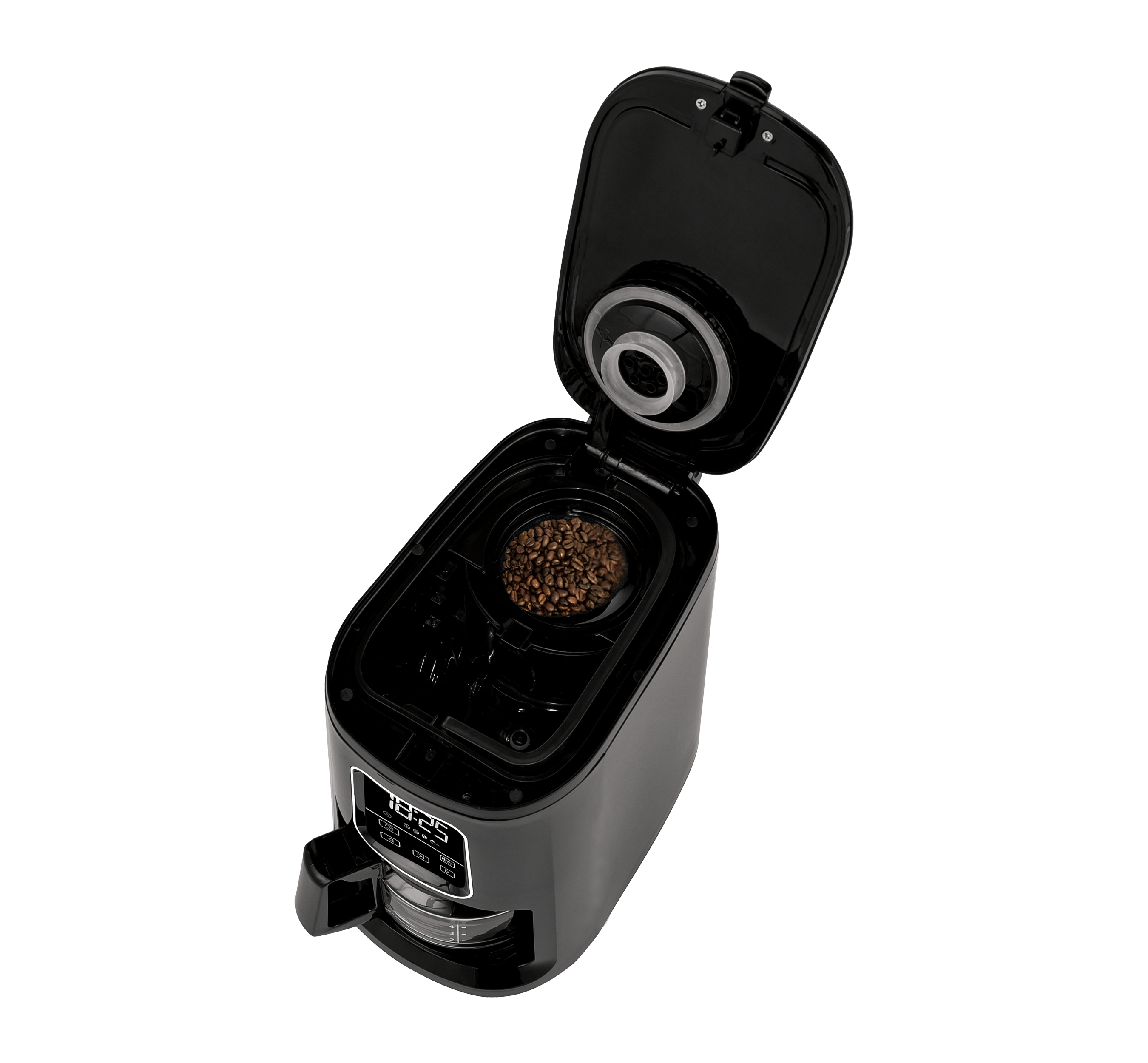 Die 24-Stunden-Brühautomatik lässt sich einfach programmieren, damit Sie mit einer frischen Kanne Kaffee aufwachen können. Das hintergrundbeleuchtete Display zeigt die Uhrzeit und das gewählte Programm an. Zur eingestellten Zeit beginnt die Kaffeemaschine mit der Zubereitung ihres eigenen Kaffees, je nach der zuletzt eingestellten Mahlgradauswahl oder mit gemahlenem Kaffee.
