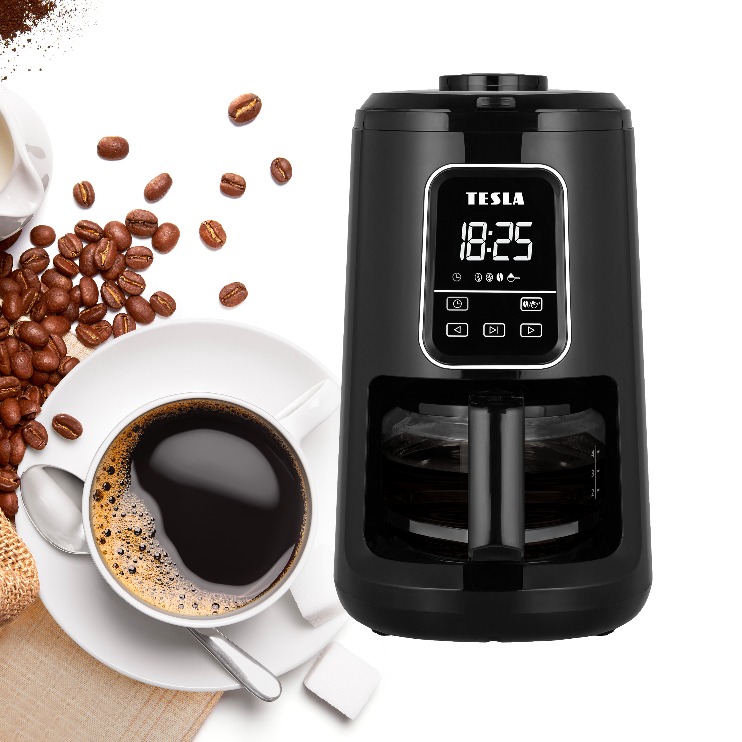 Der TESLA CoffeeStar ES400 verwandelt Ihre ganzen Bohnen in eine Tasse Kaffee, die so stark oder so mild ist, wie Sie es wünschen. Mit den Touch-Bedienelementen können Sie den Mahlgrad des Kaffees einstellen oder die Uhr und den Timer programmieren. Der permanente Filter macht die Entsorgung von Papierfiltern überflüssig.