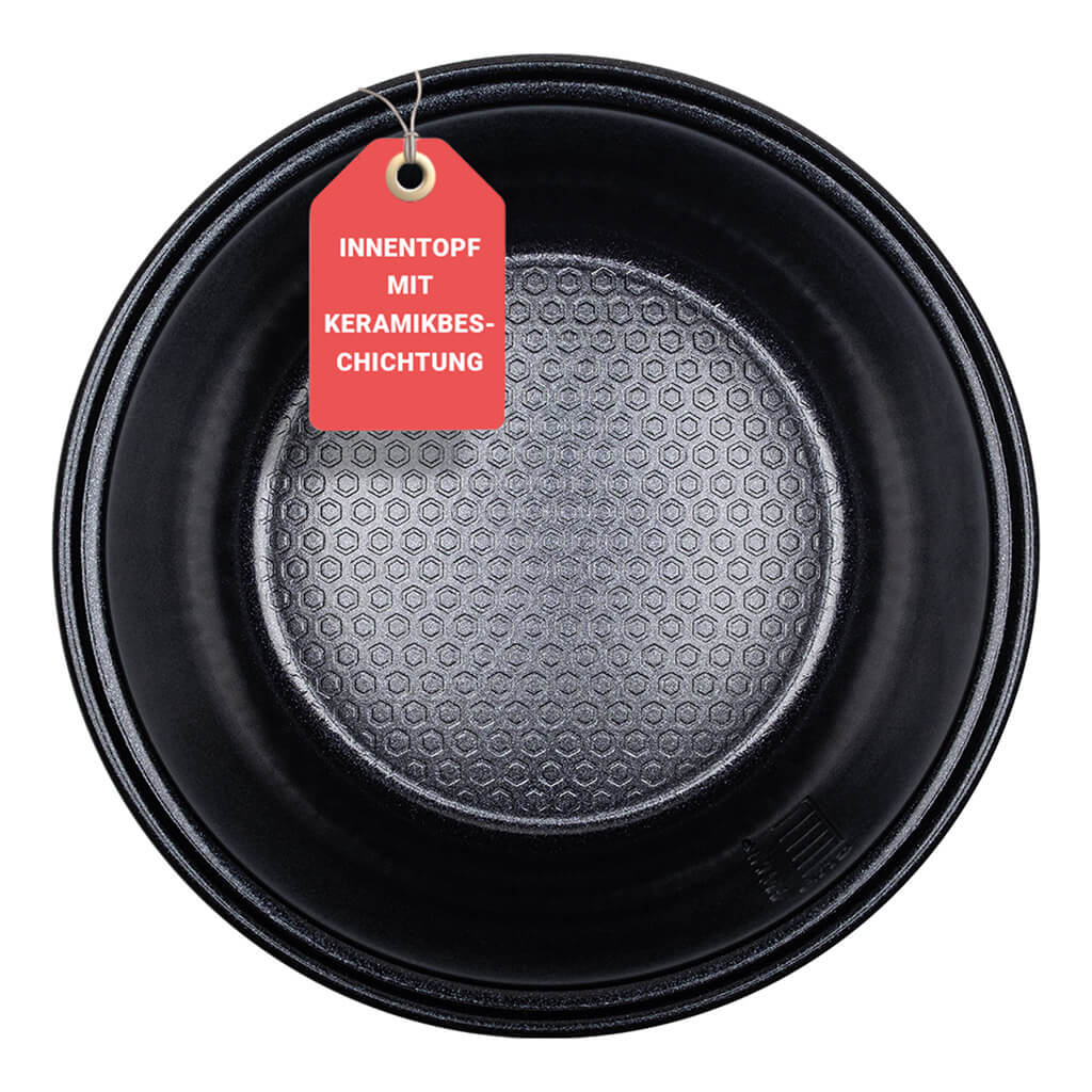 Der innere Kochtopf verfügt über eine antihaftbeschichtete Keramikoberfläche für eine einfache Reinigung.
