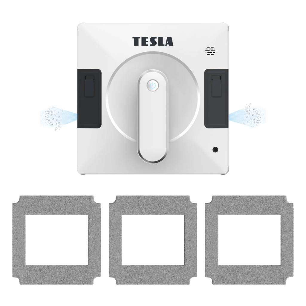 TESLA RoboStar W700 WiFi ist ein moderner Fensterputzroboter mit doppelter automatischer Wassersprühdüse für eine gründliche Fensterreinigung. Sie befeuchten ein Mikrofasertuch mit Wasser und befestigen es an der Unterseite des Geräts, stecken das Netzkabel in eine Steckdose und stellen es auf das Fenster. Danach müssen Sie nur noch einen Knopf drücken und der TESLA-Fensterputzroboter beginnt mit der Arbeit.