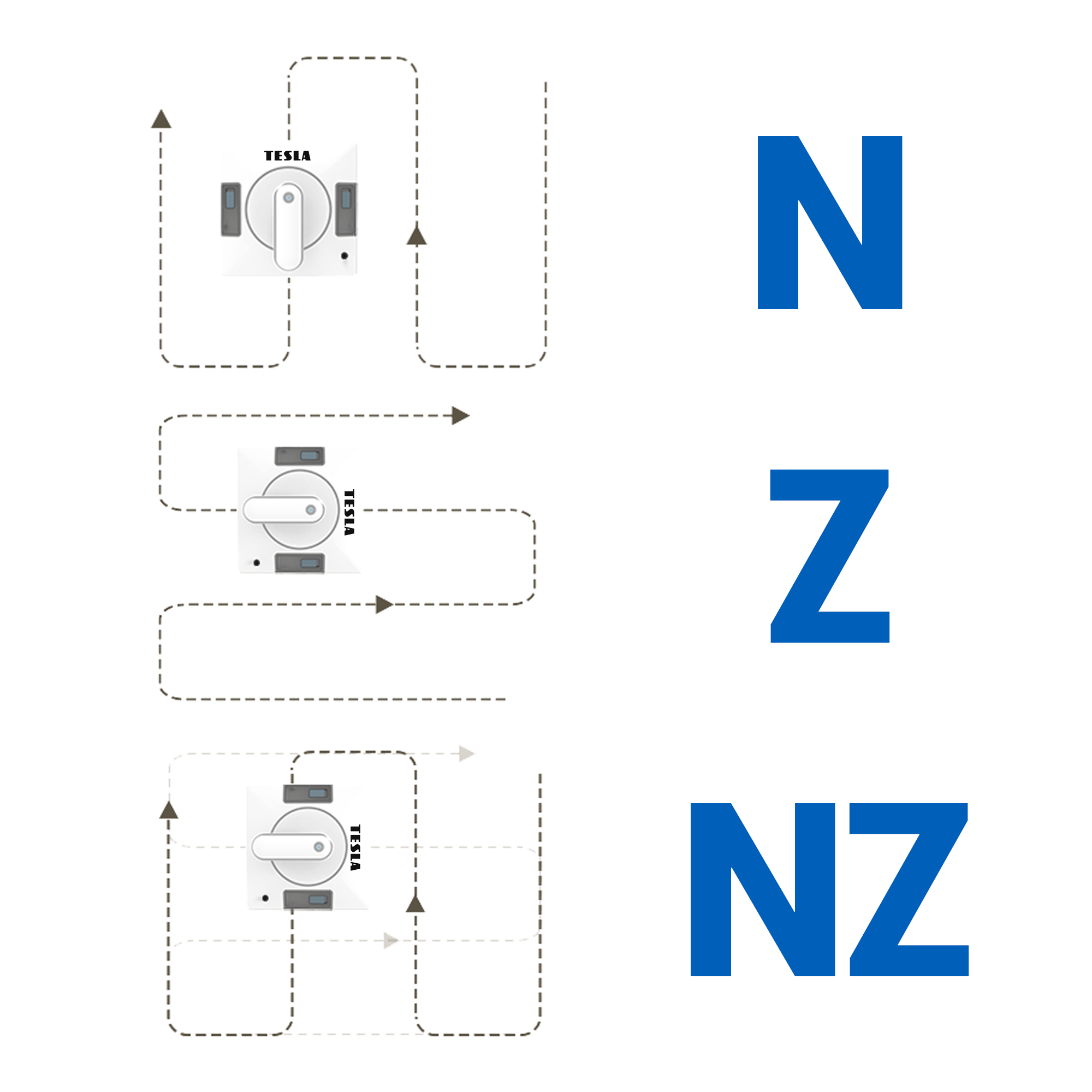 Mit der neuesten Kreiselnavigation können Sie Ihre Bewegungen intelligent planen. Für die Reinigung kann der vollautomatische Modus, der Fernbedienungsmodus, die Telefonsteuerung oder jeder andere Modus verwendet werden, je nachdem, wie groß der Reinigungsraum ist. Der „N“-förmige Reinigungsmodus eignet sich für hohe Fenster, der „Z“-förmige Reinigungsmodus für breite Fenster. Der kombinierte Reinigungsmodus „NZ“ nutzt eine Kombination dieser beiden Modi für eine perfekte Fensterreinigung.