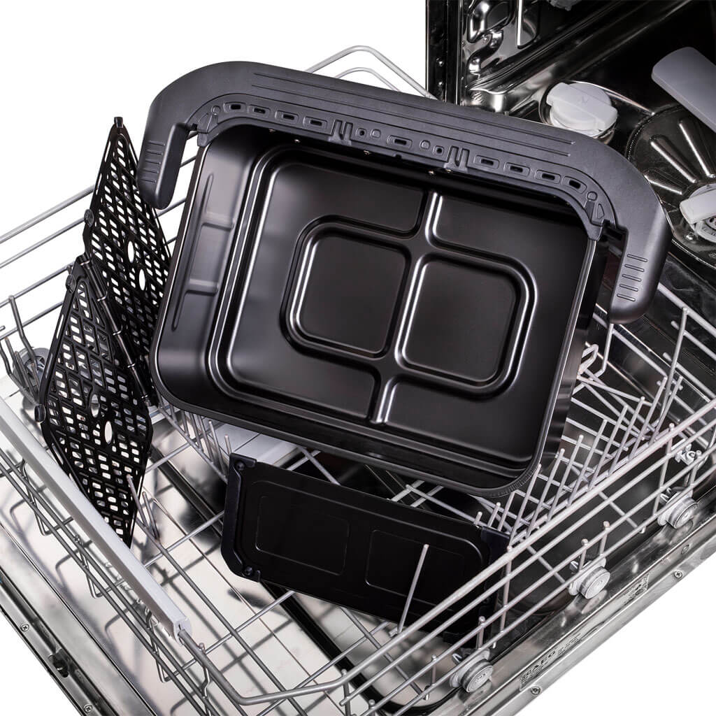 The TESLA hot air fryer is equipped with overheating protection and automatic power cut-off if the basket is not fully inserted into the appliance body. Anti-slip rubber feet ensure the stability of the device during operation. Easy maintenance is ensured thanks to the non-stick surface and removable parts that can be safely washed in the dishwasher.