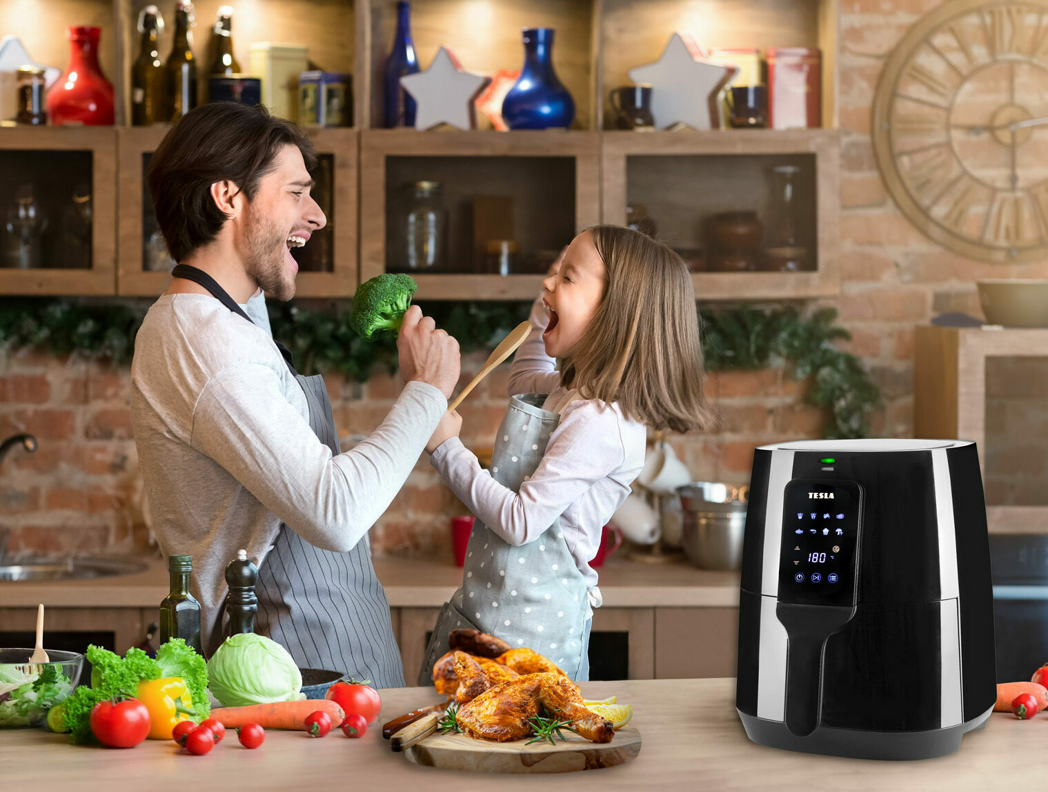 Do you like fried foods, but are you afraid they are unhealthy? With the TESLA AirCook Q30 hot air fitting, you no longer have to deal with harmful burnt oils or food soaked in fat. Heat2Flow hot air technology fry food using almost zero oil. The result is your fries, chicken or steak prepared the way you like them – crispy on the outside and supple on the inside.