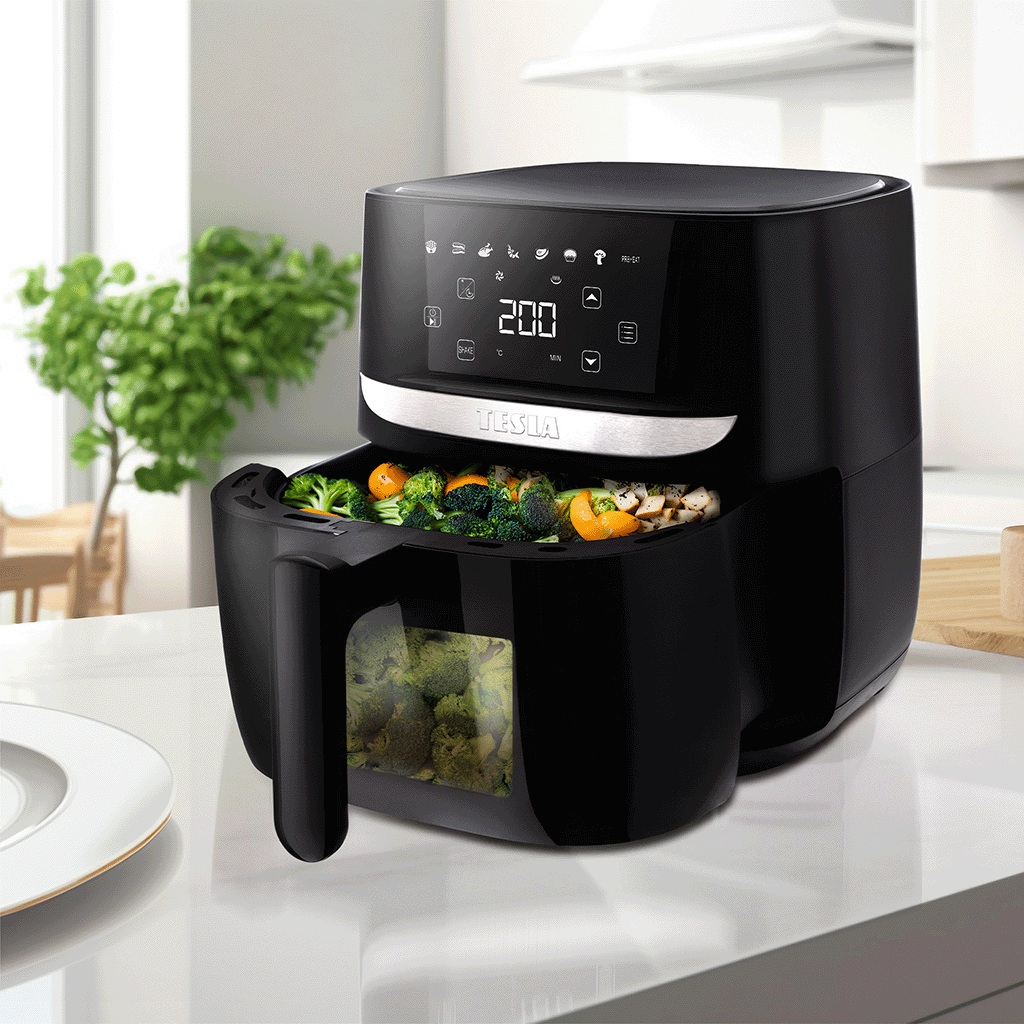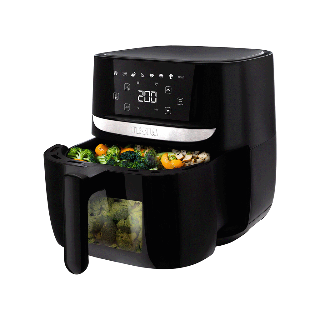 Discover a new way of preparing your favorite meals with the multifunctional hot air fryer TESLA AirCook Q55 XL Pro. Forget traditional frying and welcome a healthier, tastier and faster alternative. Thanks to a large basket with a see-through window and lighting, a touch control panel with preset programs and preheating to the ideal temperature, every meal is perfect – crispy on the outside and soft on the inside.