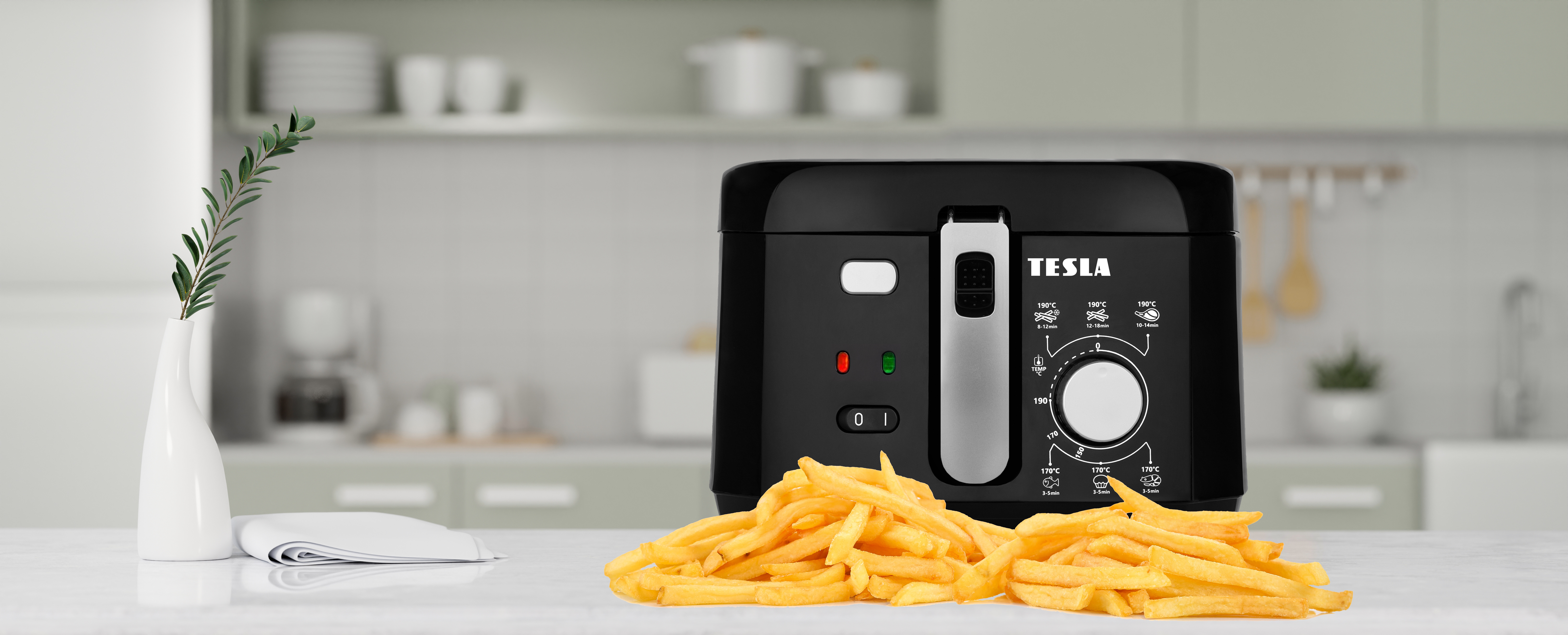 will help you prepare delicious, crispy fries and many other dishes that require frying in oil. You can prepare vegetables, meat, fish or donuts. The window in the lid allows you to watch the food while it is cooking. Thanks to the ability to set the oil temperature up to 190°C, you can set the best temperature for the food you are currently preparing.