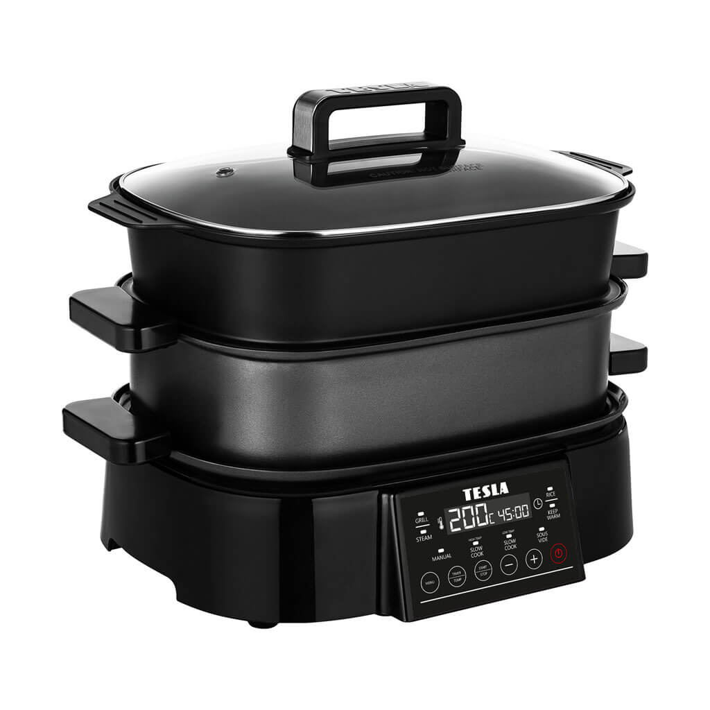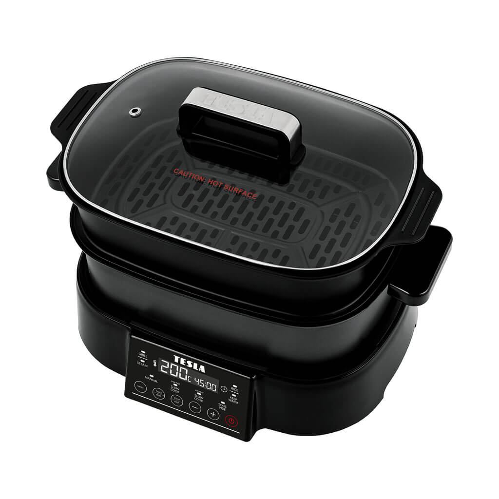 The TESLA MultiCook M90 Grill multi-functional electric cooker allows you to cook in three different ways thanks to the grill pan or the cooking and steaming pot. With so many options, you can prepare eggs and bacon for breakfast or pancakes, steaks for a date night or pasta for the whole family.