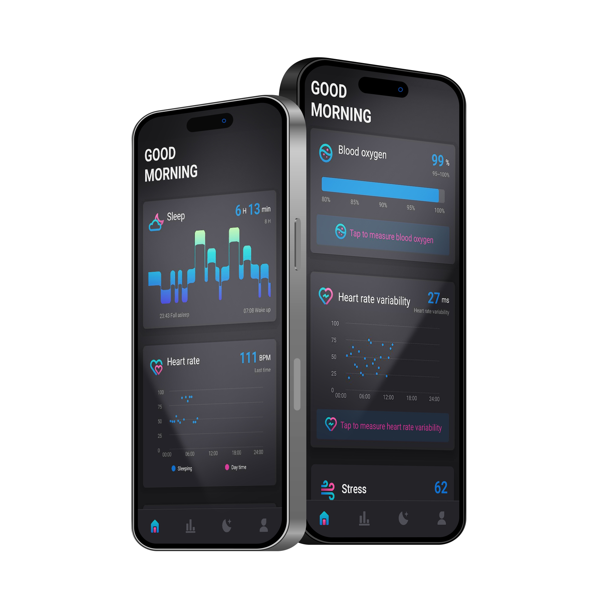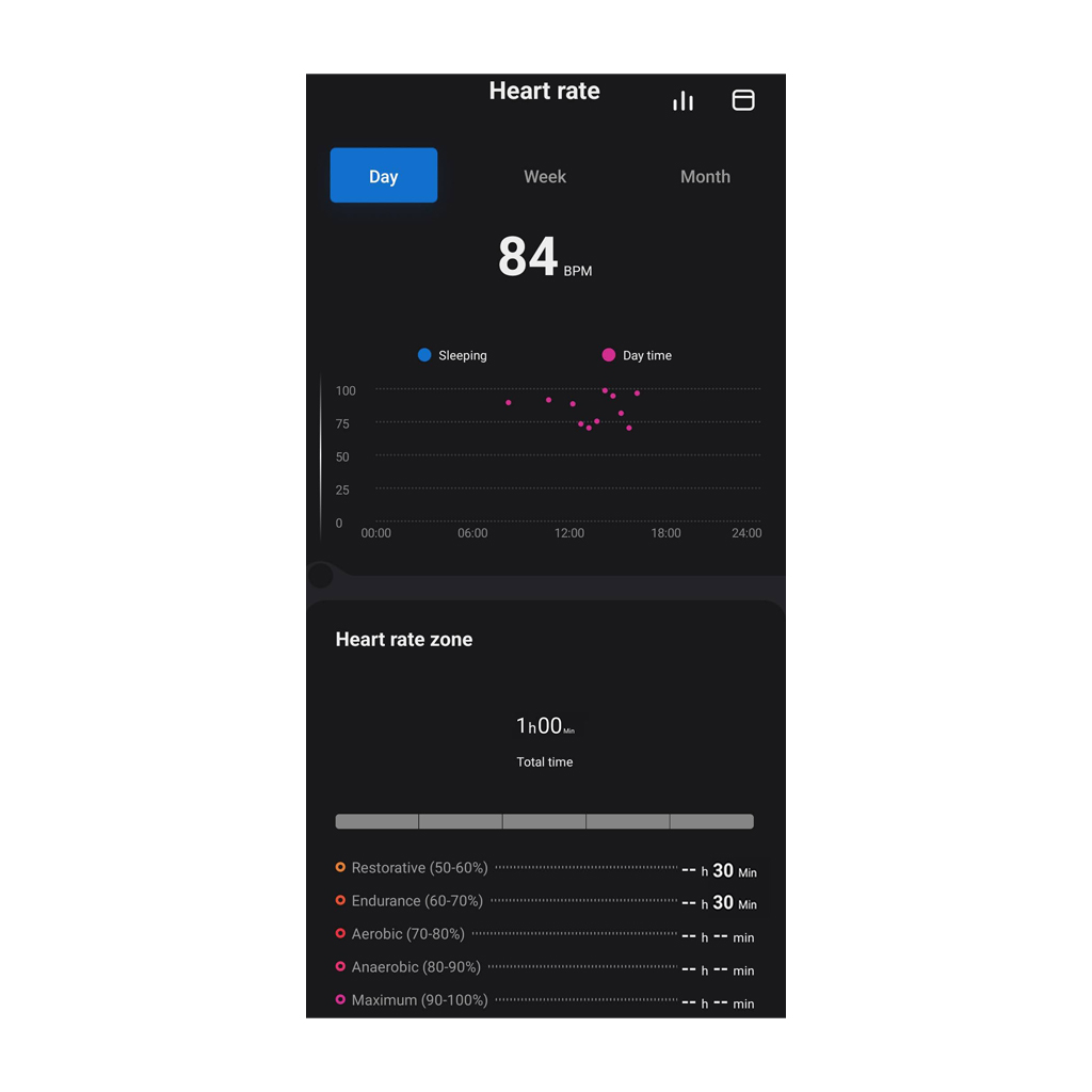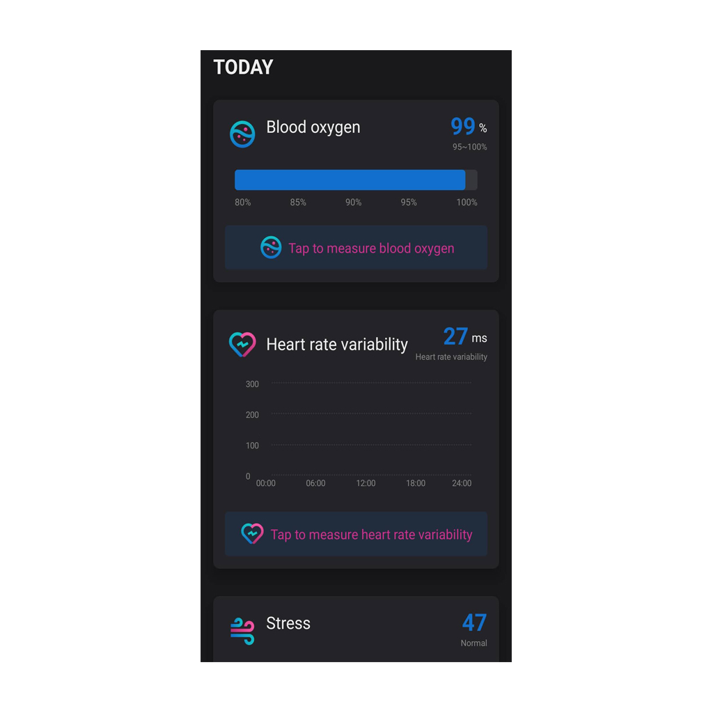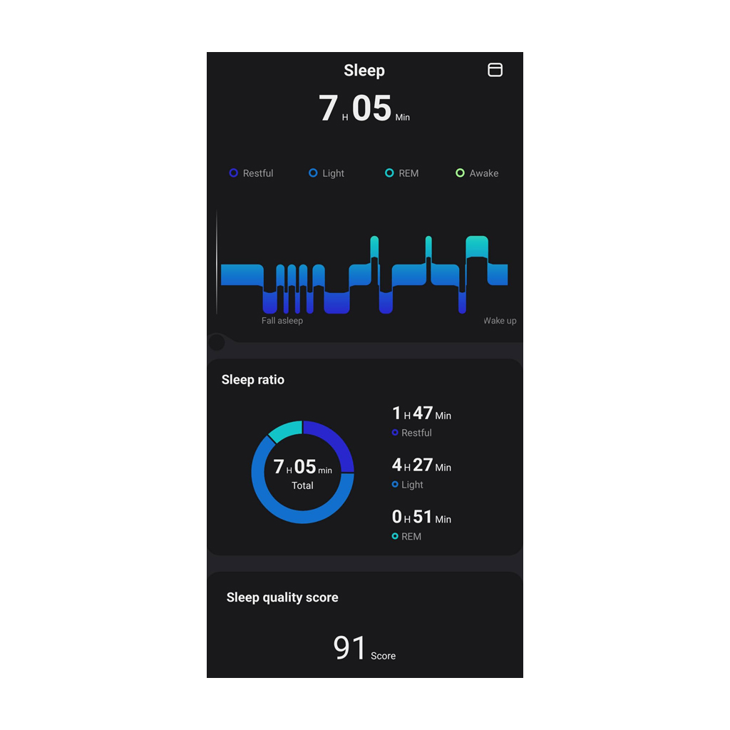 Tracking sleep is key to improving overall health. The TESLA Ring G55 application provides a detailed overview of your sleep, analyzes its individual phases and offers valuable insights to optimize rest and well-being. You can also use the app to get quality scores based on the Pittsburgh Sleep Quality Index and monitor both heart rate and heart rate variability (HRV) during sleep. This comprehensive data helps you better understand your sleep habits and take steps to improve them. Regular monitoring and analysis of sleep with the TESLA Ring G55 contributes to a better level of overall health.