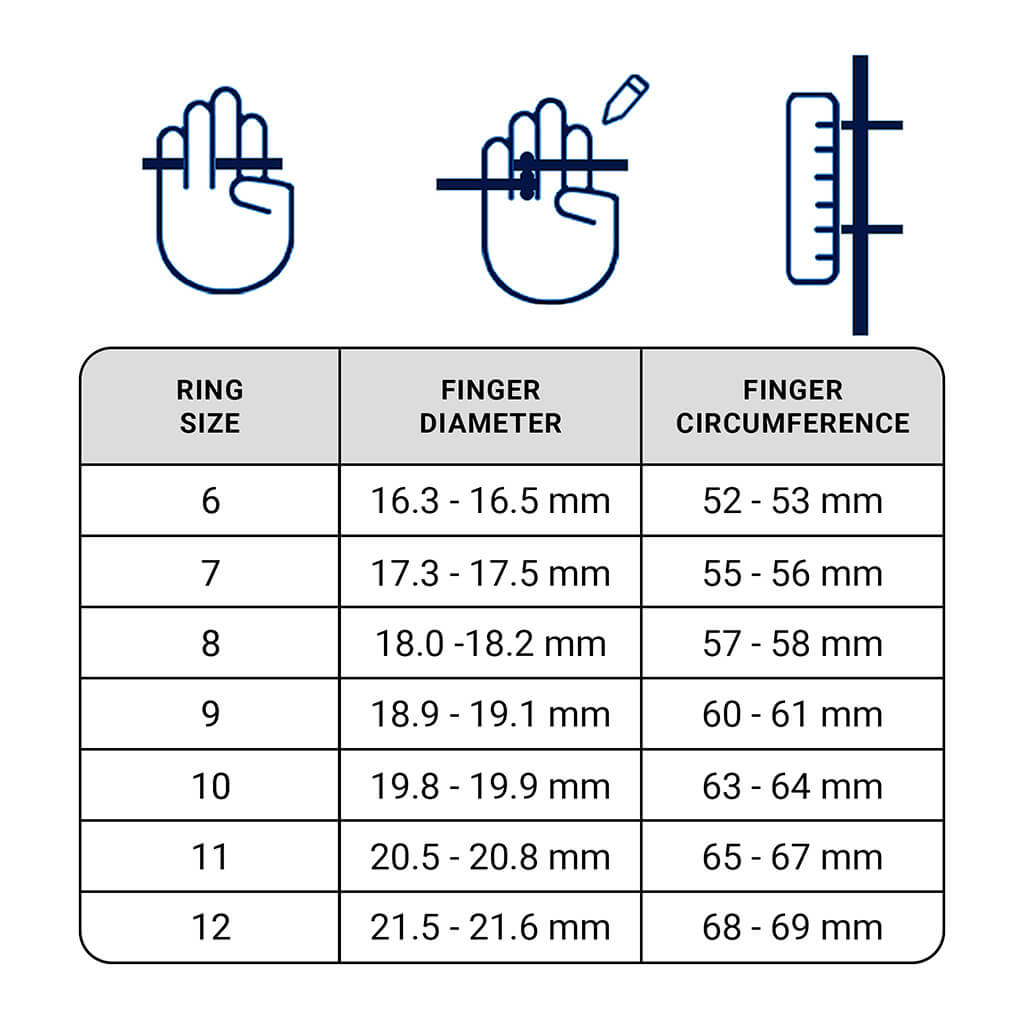 If the measured value falls between two sizes, we recommend choosing the larger ring size.