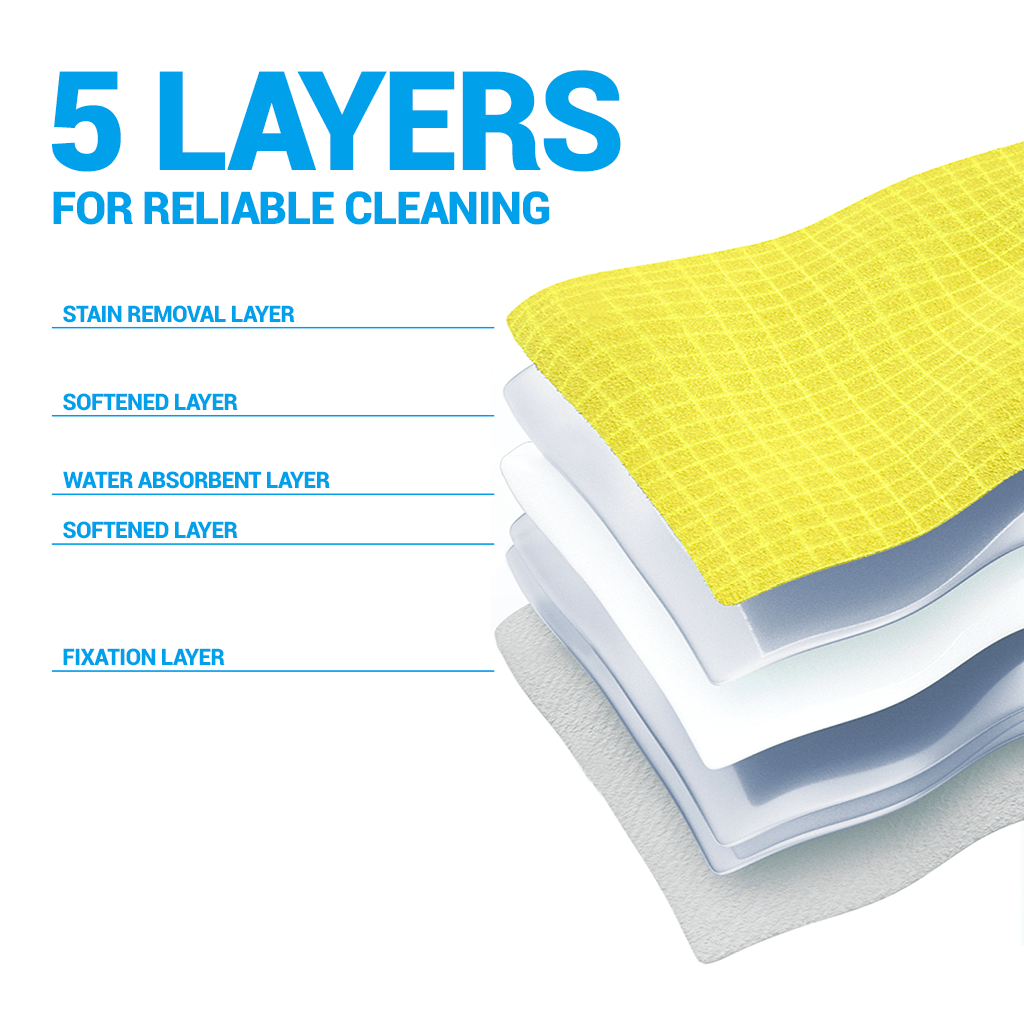 A high-quality five-layer microfibre cleaning cloth ensures reliable cleaning and excellent water absorption. In the package you get 2 additional microfibre cleaning cloths that can be washed, dried and reused.
