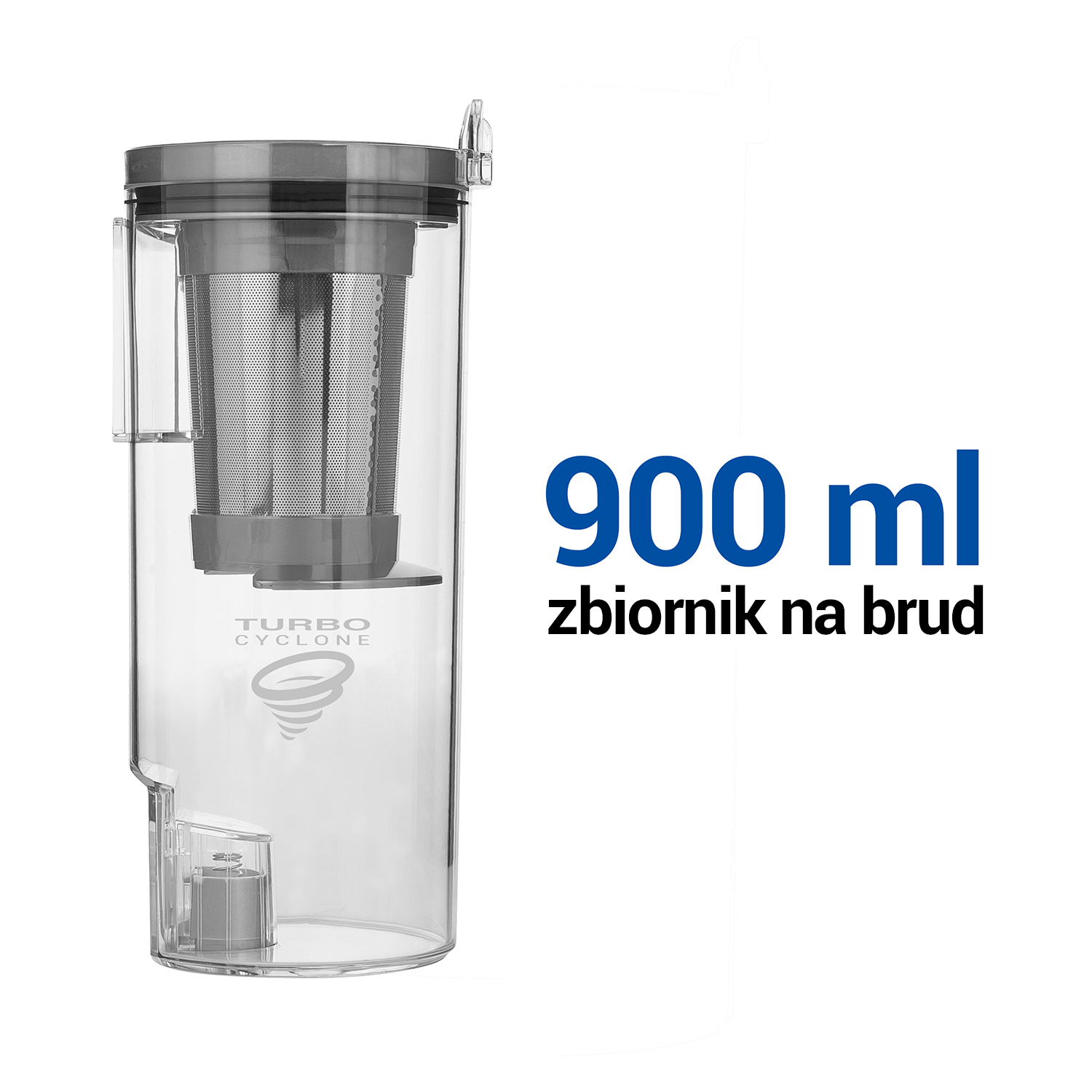 Zasysane przez odkurzacz zanieczyszczenia trafiają bezpośrednio do pojemnika na zanieczyszczenia, dzięki czemu nie trzeba poświęcać czasu na wymianę worków na kurz. Duża pojemność zbiornika na zanieczyszczenia wystarczy na zabrudzenia z całego mieszkania. Po odkurzeniu pojemnik można po prostu umyć wodą i przygotować do kolejnego użycia.