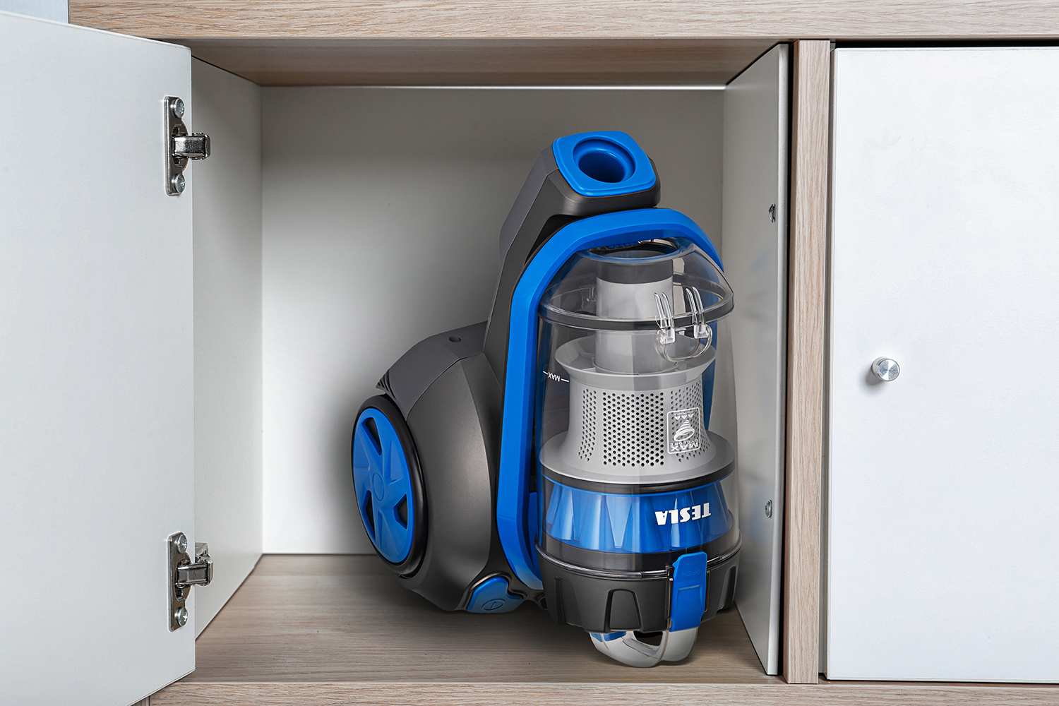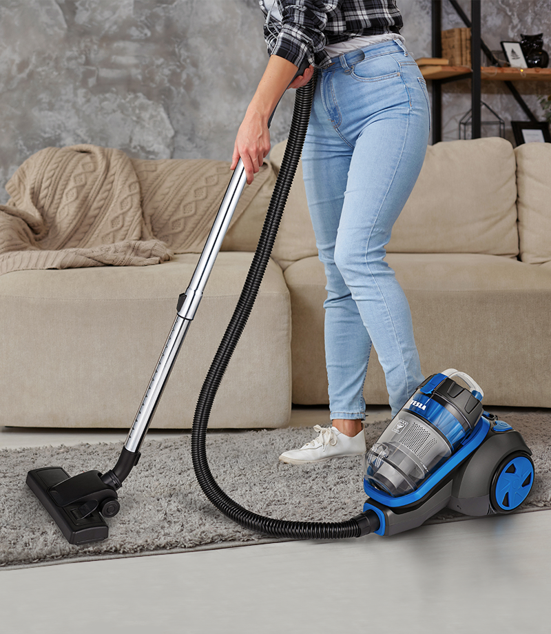 Do odkurzacza podłogowego TESLA dołączony jest przewód zasilający o długości 7 metrów z automatycznym zwijaniem. Zawiera również teleskopową rurkę, dzięki której można zwiększyć zasięg działania do 10 metrów. Z łatwością posprzątasz nawet duże pomieszczenia, bez konieczności przełączania się między gniazdkami elektrycznymi. Dolne kółko obraca się o 360°, co ułatwia poruszanie się we wszystkich kierunkach.