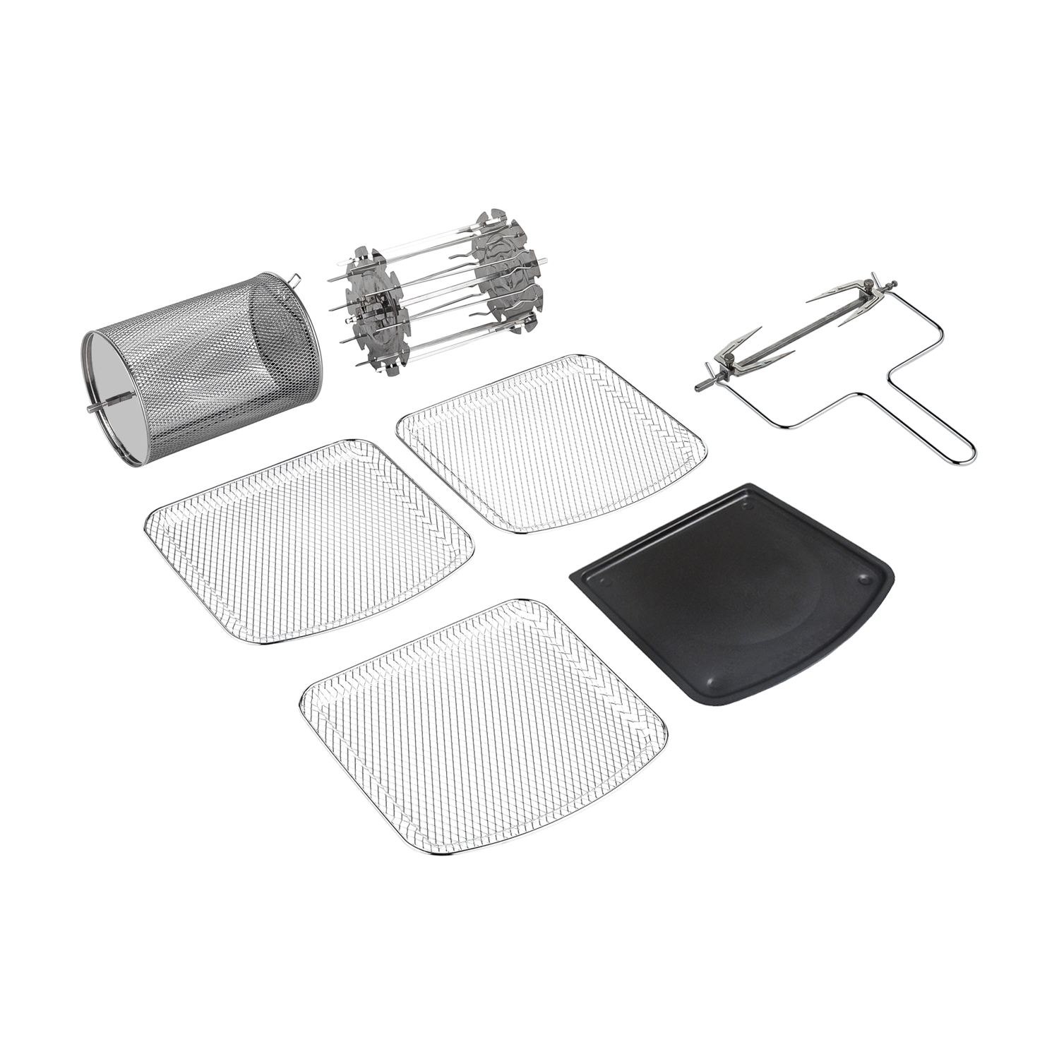 TESLA AirCook & Grill QG700 jest dostarczany z szeroką gamą akcesoriów, które mają szeroki zakres zastosowań podczas gotowania – 3 druciane ruszty, obrotowy kosz do smażenia, widelec do grilla, wyjmowany uchwyt i uchwyt na szpikulec/szaszłyk. Zdejmowane części można myć w zmywarce.