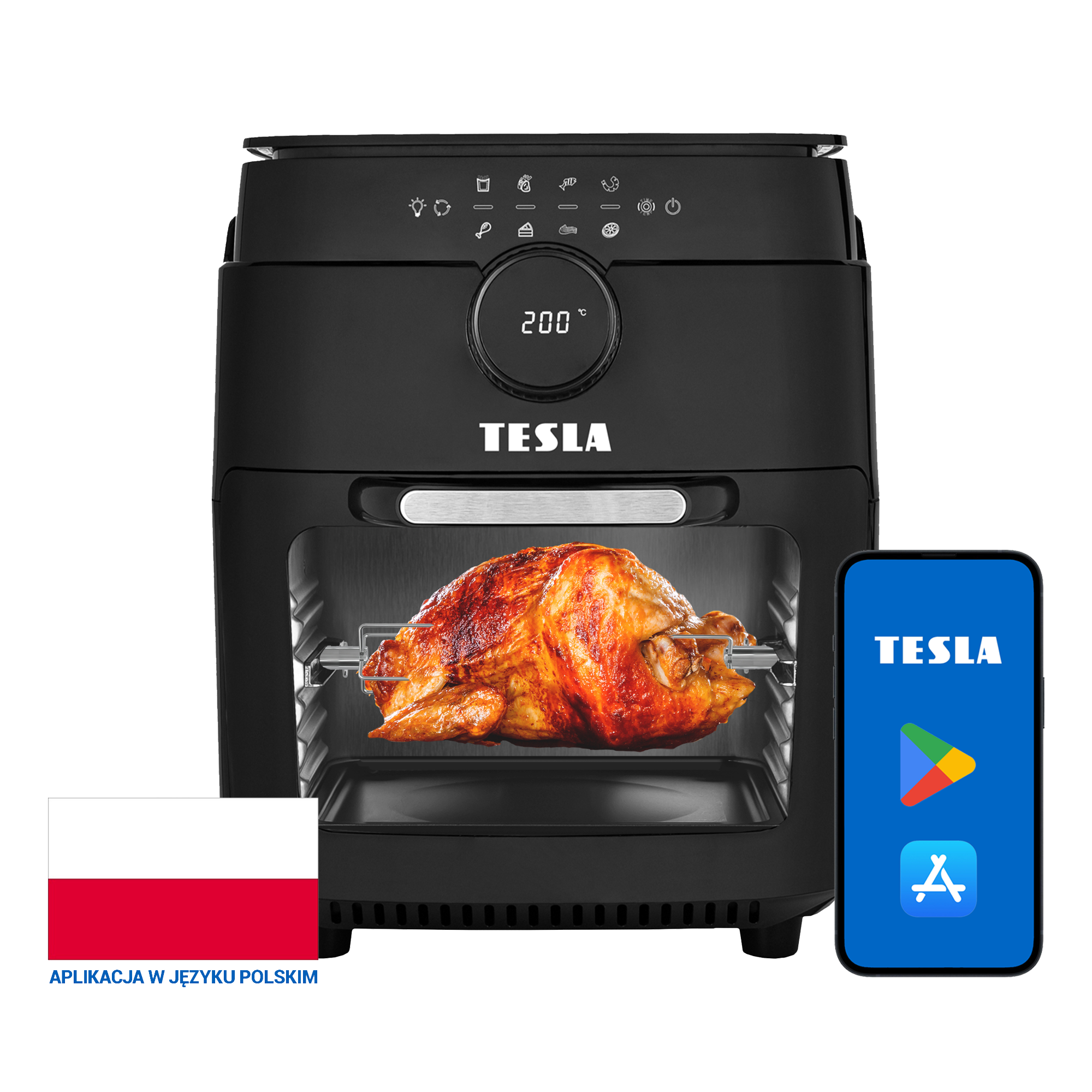 Steruj wielofunkcyjną cyfrową frytkownicą na gorące powietrze TESLA AirCook & Grill QG800 WiFi w dowolnym miejscu i czasie za pomocą aplikacji na Androida/iOS w języku polskim.