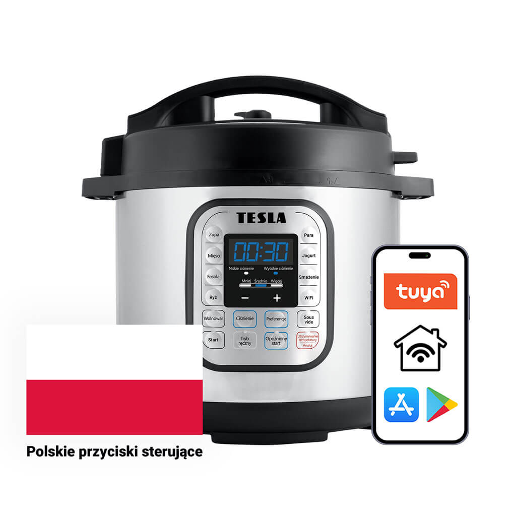 TESLA EliteCook K70 WiFi to szybkowar elektryczny zaprojektowany tak, aby był bezpieczny, wygodny i niezawodny. Ponadto jest dostosowany do klientów polskich, ponieważ przyciski sterujące na panelu przednim są w języku polskim. Urządzenie jest zatem bardzo proste w obsłudze i poradzi sobie z nim każdy. Funkcja „Opóźniony start” (timer) umożliwia opóźnienie rozpoczęcia gotowania nawet o 24 godziny, dzięki czemu gotowanie rozpocznie się o odpowiedniej dla Ciebie godzinie.