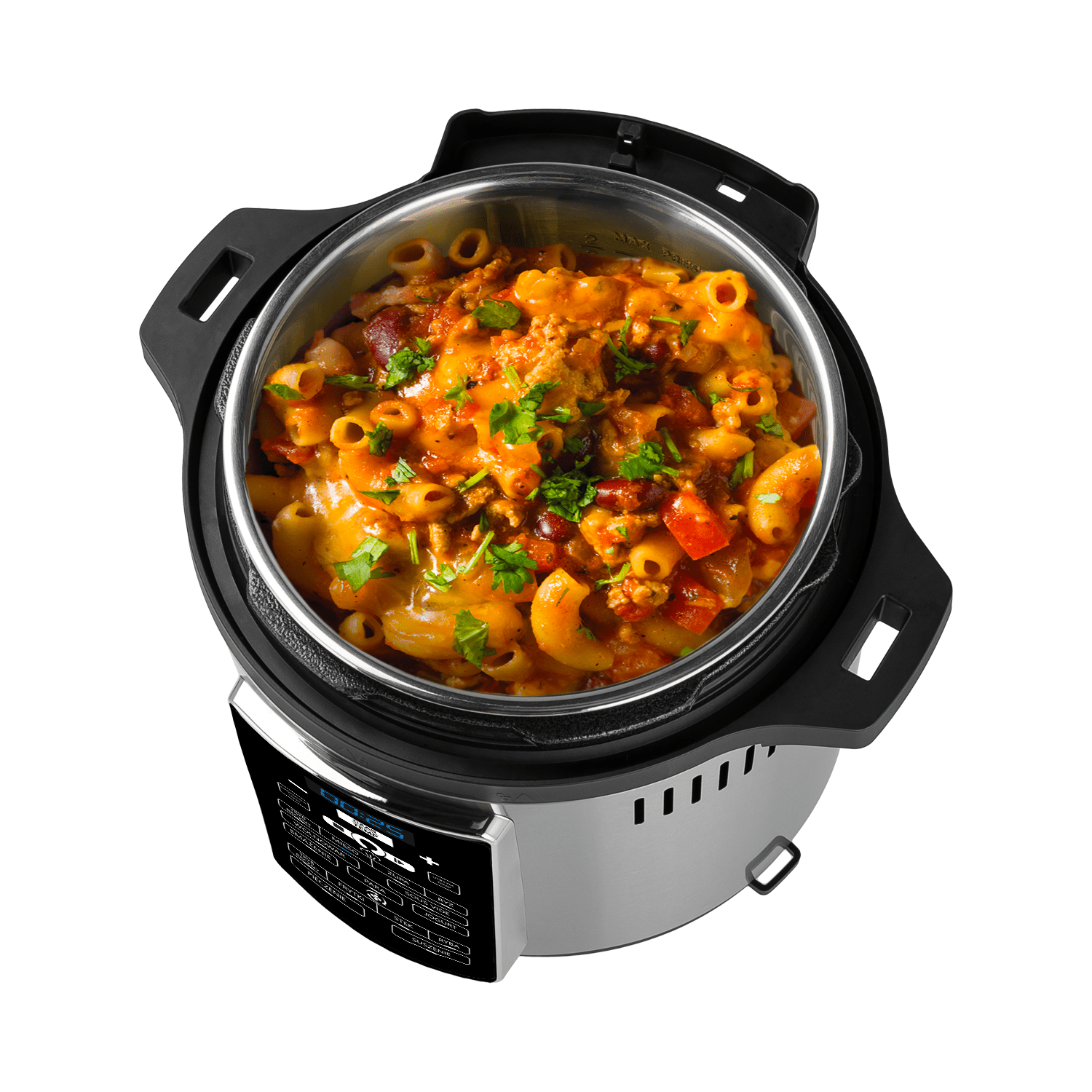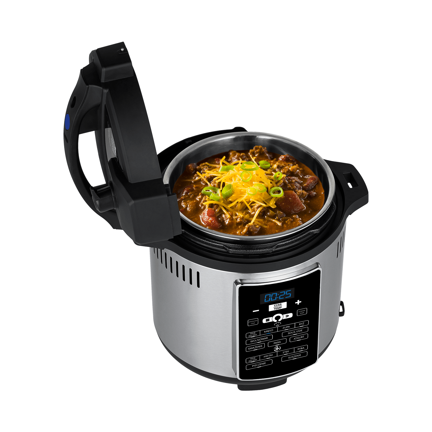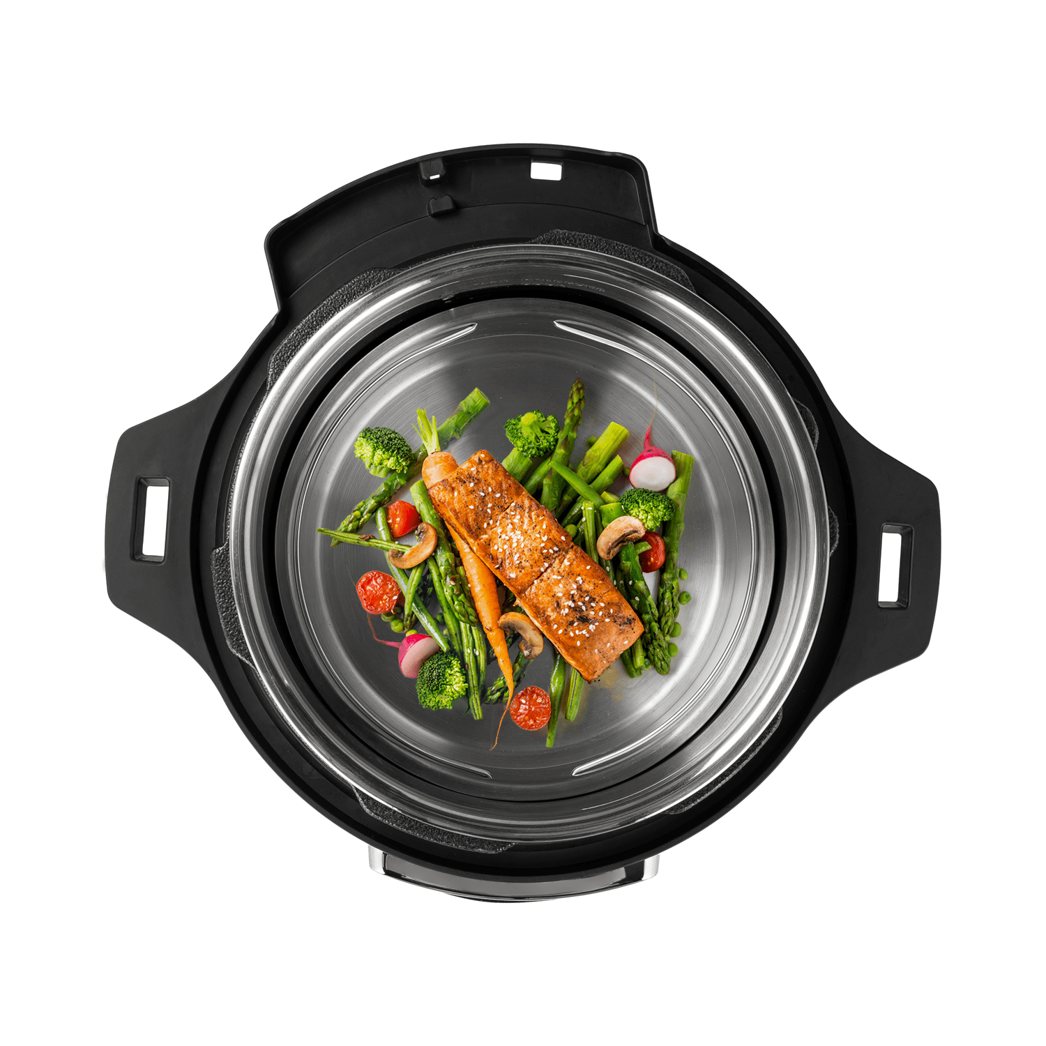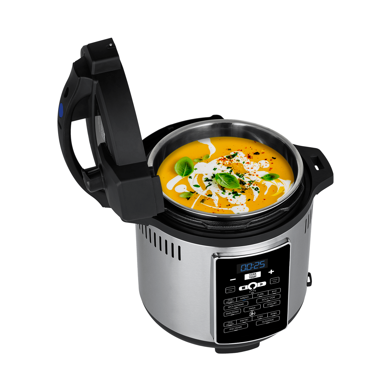 Nowoczesny mikroprocesor monitoruje wewnętrzne ciśnienie i temperaturę oraz dostosowuje intensywność grzania podczas całego procesu gotowania. Szybkowar jest wyposażony w szereg funkcji zabezpieczających, w tym system zabezpieczający pokrywę, który umożliwia wytwarzanie ciśnienia tylko wtedy, gdy szybkowar jest bezpiecznie zamknięty i nie pozwala na jego otwarcie, dopóki ciśnienie wewnątrz szybkowaru nie spadnie do poziomu bezpieczna wartość. Możesz dostosować czas gotowania i wybór ciśnienia do swoich potrzeb.