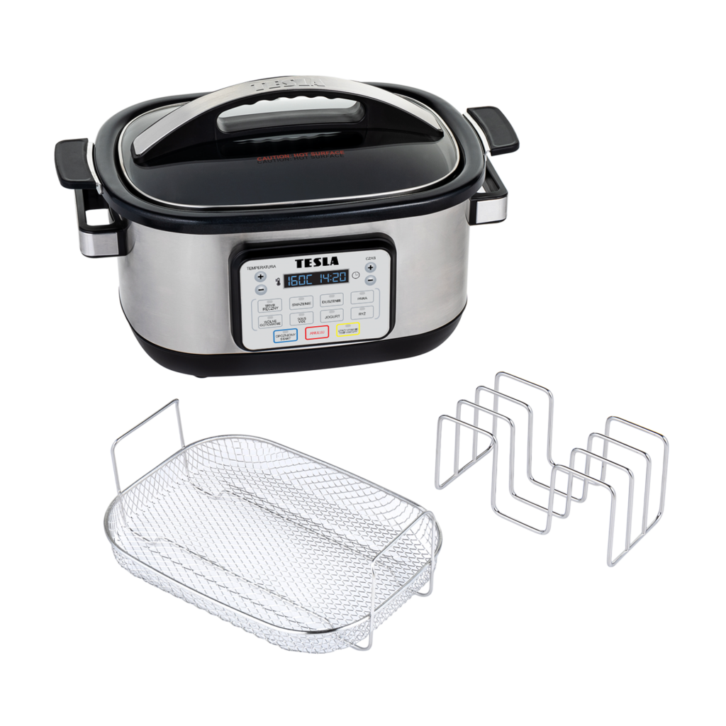 Ponadczasowy design ze stali nierdzewnej idealnie pasuje do każdej nowoczesnej kuchni. TESLA MultiCook M80 Deluxe jest wyposażony w 6-litrowy ceramiczny garnek z nieprzywierającą powłoką, dzięki czemu może gotować również dla dużej rodziny. Szklana pokrywa pozwala na sprawdzenie postępu przygotowywania potraw bez konieczności przerywania gotowania. Garnek do gotowania i pokrywkę wykonane z hartowanego szkła można myć w zmywarce.