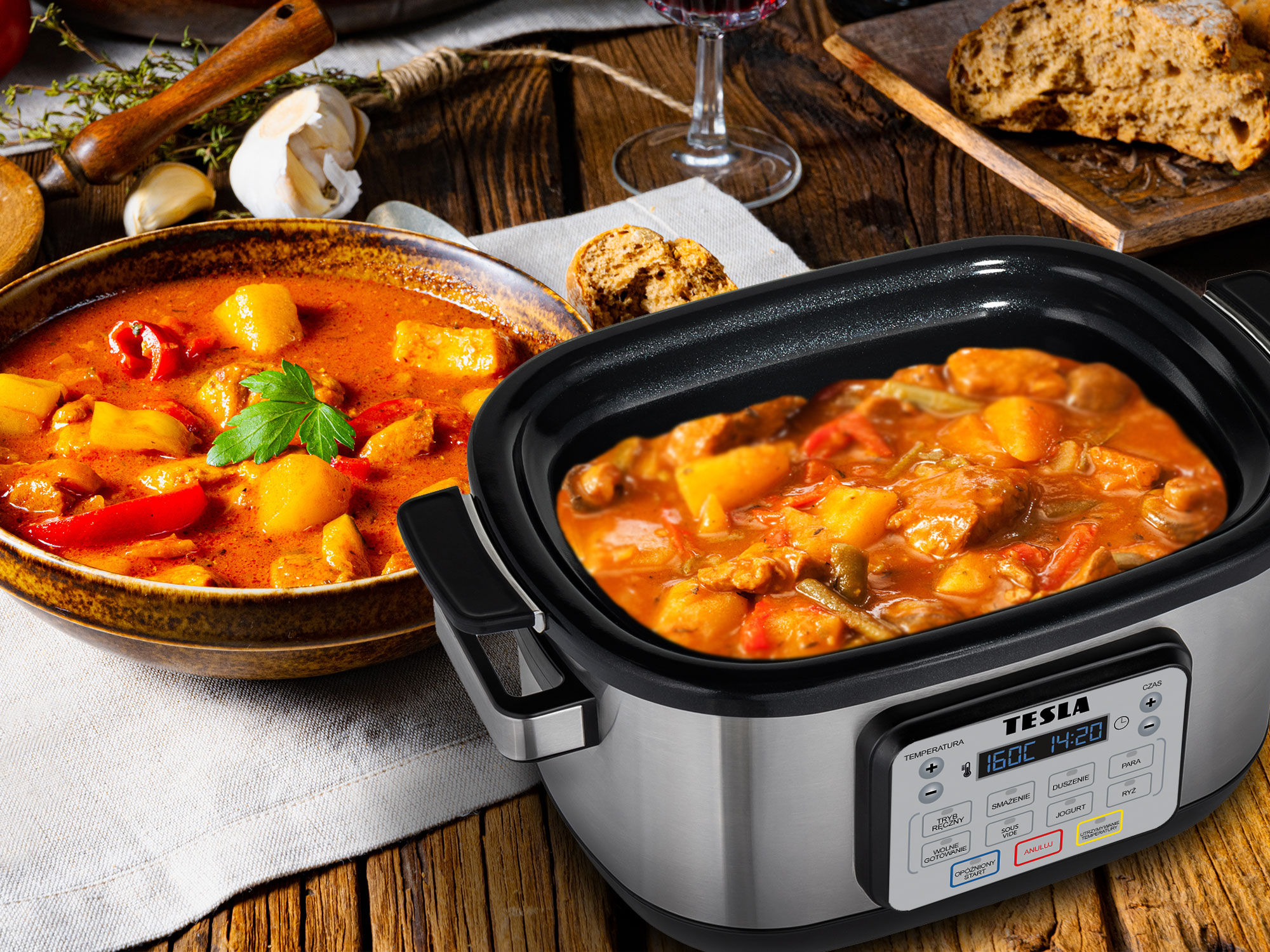 Spraw, by gotowanie było łatwe i przyjemne dzięki wielofunkcyjnemu programowalnemu garnkowi elektrycznemu TESLA MultiCook M80 Deluxe. Dzięki zaawansowanej technologii mikroprocesorowej i 10 predefiniowanym programom możesz ugotować swoje ulubione potrawy za naciśnięciem jednego przycisku. TESLA MultiCook M80 Deluxe zapamiętuje Twoje preferencje dotyczące czasu lub temperatury w każdym programie, a także ustawienia funkcji „Utrzymywanie temperatury”, jeśli funkcja została włączona dla wybranego programu.