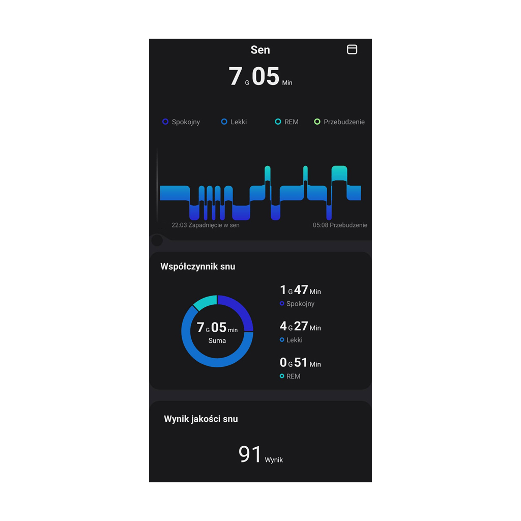 Monitorowanie snu jest kluczem do poprawy ogólnego stanu zdrowia. Aplikacja TESLA Ring G55 zapewnia szczegółowy przegląd Twojego snu, analizuje jego poszczególne fazy i dostarcza cennych spostrzeżeń pozwalających zoptymalizować odpoczynek i dobre samopoczucie. Możesz także używać aplikacji do uzyskiwania wyników jakości na podstawie wskaźnika jakości snu Pittsburgh oraz monitorowania tętna i zmienności tętna (HRV) podczas snu. Te kompleksowe dane pomogą Ci lepiej zrozumieć swoje nawyki związane ze snem i podjąć kroki w celu ich poprawy. Regularne monitorowanie i analiza snu za pomocą TESLA Ring G55 przyczynia się do poprawy ogólnego stanu zdrowia.