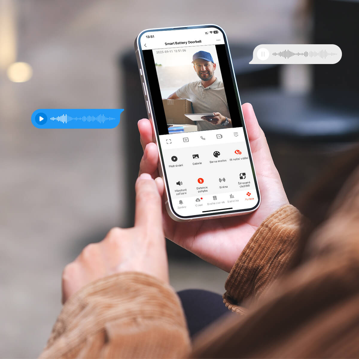 Wbudowany mikrofon i głośnik umożliwiają płynną komunikację dwukierunkową, dzięki czemu możesz rozmawiać z gośćmi nawet wtedy, gdy nie ma Cię w domu. Dostępne są także szybkie odpowiedzi i nagrane wcześniej komunikaty na sytuacje, gdy nie możesz odpowiedzieć osobiście. Syrena pomaga odstraszyć niepożądanych gości, a tryb Nie przeszkadzać zapewnia spokój, kiedy tego potrzebujesz.