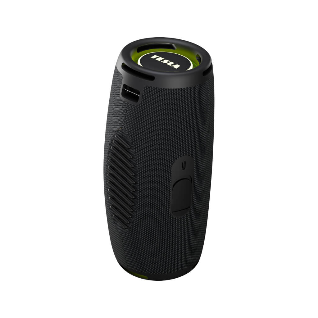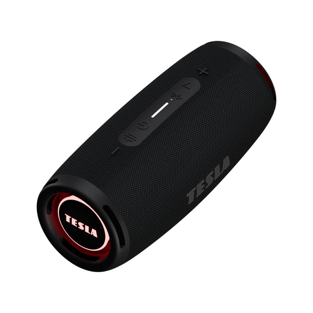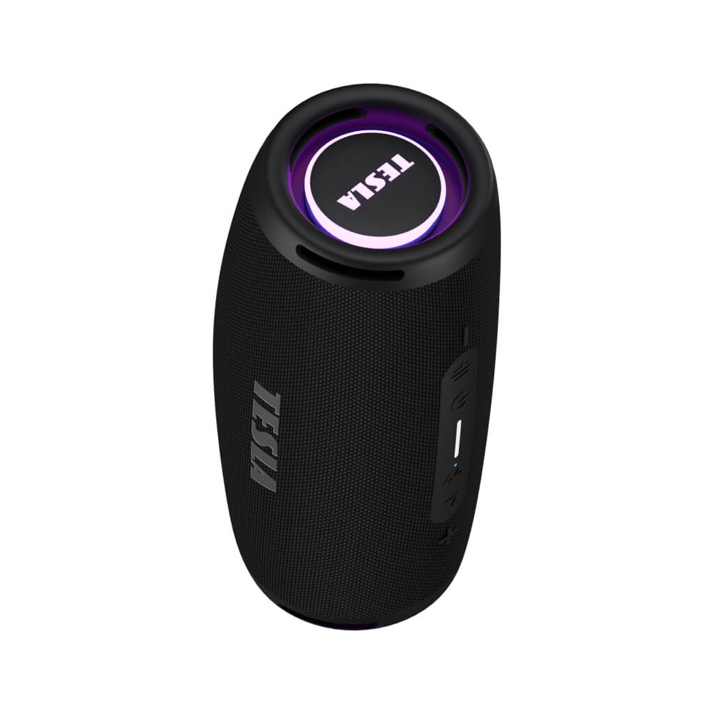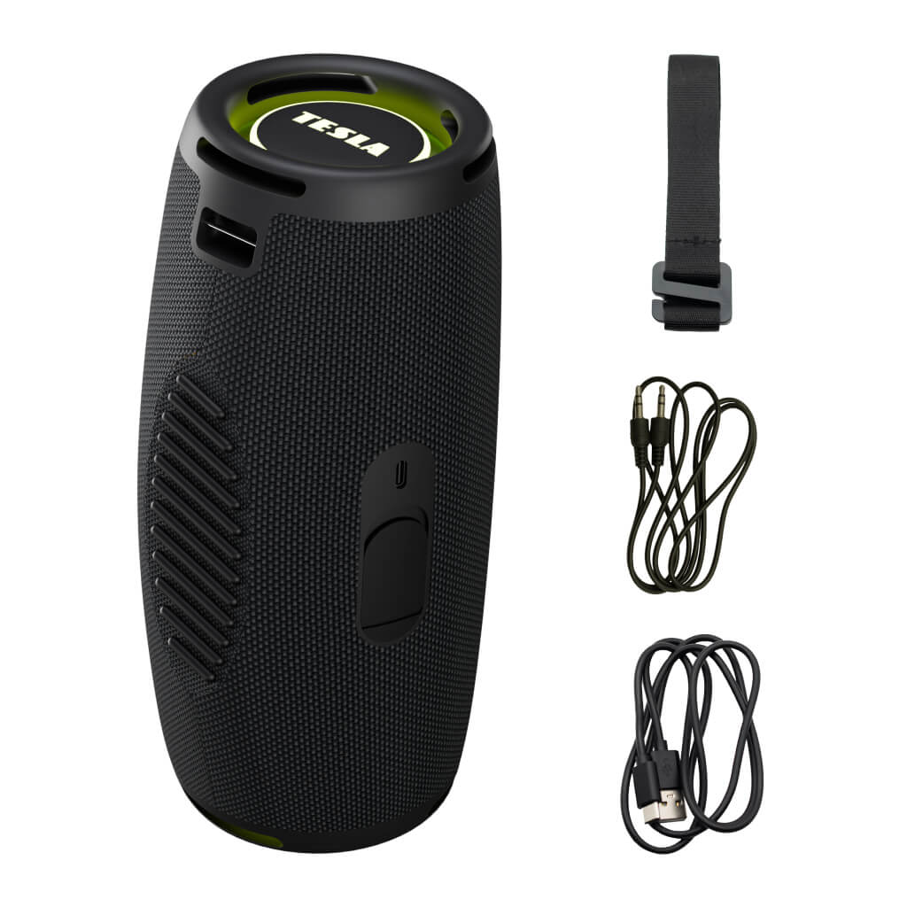 TESLA Sound BS70 na pierwszy rzut oka zachwyca solidną i stylową konstrukcją. Czarny kolor z podświetleniem RGB nadaje głośnikowi nowoczesny i elegancki wygląd, który idealnie pasuje do każdego wnętrza lub na zewnątrz. Przykuwa uwagę nie tylko wyszukaną konstrukcją, ale także praktycznymi detalami. W zestawie znajduje się pętelka do zawieszenia, dzięki czemu z łatwością przymocujesz ją do plecaka lub torby. Opcjonalne podświetlenie RGB nadaje głośnikowi stylowy wygląd i uprzyjemnia atmosferę podczas wieczornych posiedzeń.