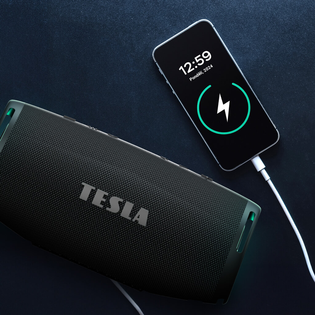 Głośnik wyposażony jest w akumulator o dużej pojemności o pojemności 8000 mAh, który zapewni Ci aż do 15 godzin ciągłej przyjemności słuchania muzyki. Jedną z najważniejszych cech TESLA Sound BS70 jest funkcja power banku. Umożliwia ładowanie dowolnego urządzenia, które można podłączyć poprzez USB – telefonów komórkowych, tabletów, inteligentnych zegarków i innych urządzeń elektronicznych. Zapewnia nie tylko wspaniałe wrażenia dźwiękowe w każdym miejscu, ale także praktyczną funkcję ładowania, dzięki której nie zabraknie Ci energii.