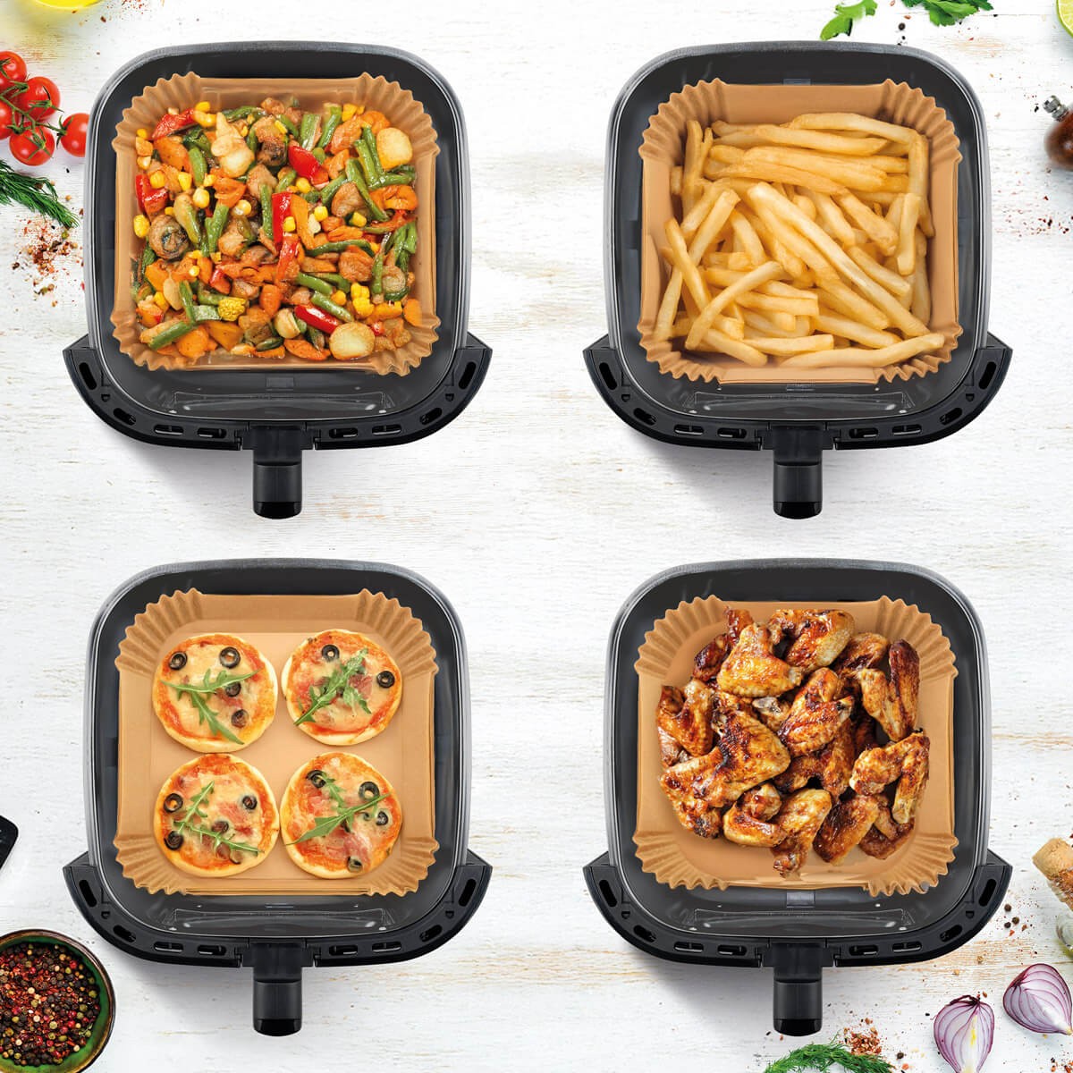 V balení naleznete 50 kusů papírových forem, která chrání koš horkovzdušné fritézy před zbytky jídla, olejovými skvrnami a škrábanci. Prodlouží životnost koše, usnadní čištění a údržbu fritézy, například při přípravě hranolků nebo kuřecích křidélek.