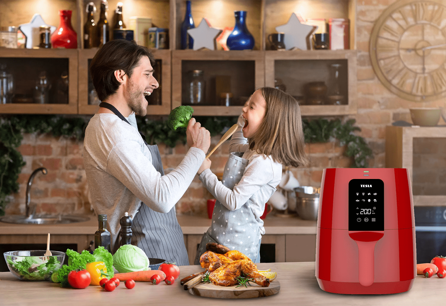 Máte rádi smažená jídla, ale bojíte se, že jsou nezdravá? S horkovdušnou fitézou TESLA AirCook Q30 už nemusíte řešit zdraví škodlivé přepálené oleje ani jídlo nasáknuté tukem. Technologie horkého vzduchu Heat2Flow usmaží jídlo s použitím skoro nulového množství oleje. Výsledkem jsou vaše hranolky, kuře nebo řízek připravené tak, jak je máte rádi – křupavé navenek a vláčné uvnitř.