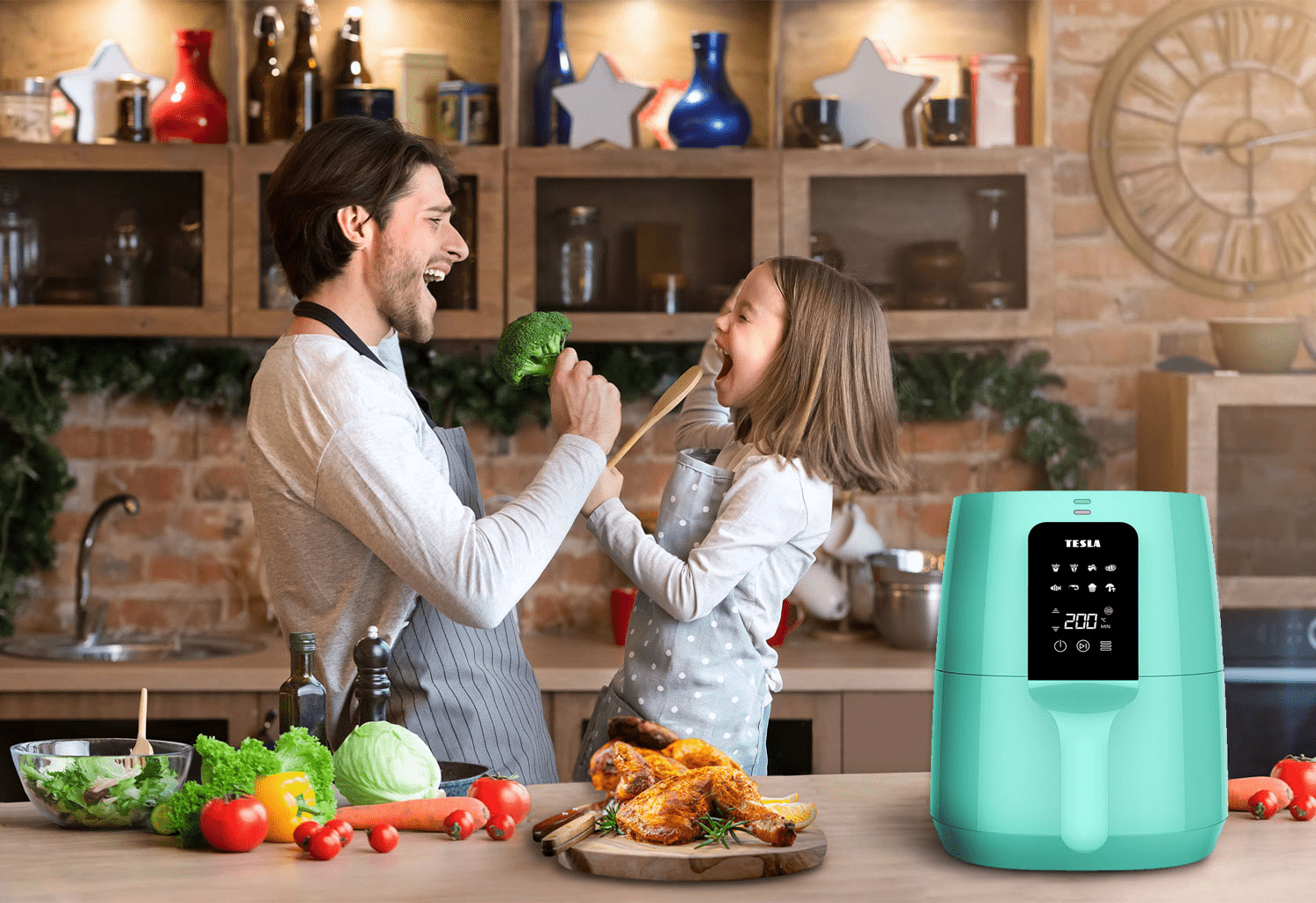Máte rádi smažená jídla, ale bojíte se, že jsou nezdravá? S horkovdušnou fitézou TESLA AirCook Q30 už nemusíte řešit zdraví škodlivé přepálené oleje ani jídlo nasáknuté tukem. Technologie horkého vzduchu Heat2Flow usmaží jídlo s použitím skoro nulového množství oleje. Výsledkem jsou vaše hranolky, kuře nebo řízek připravené tak, jak je máte rádi – křupavé navenek a vláčné uvnitř.