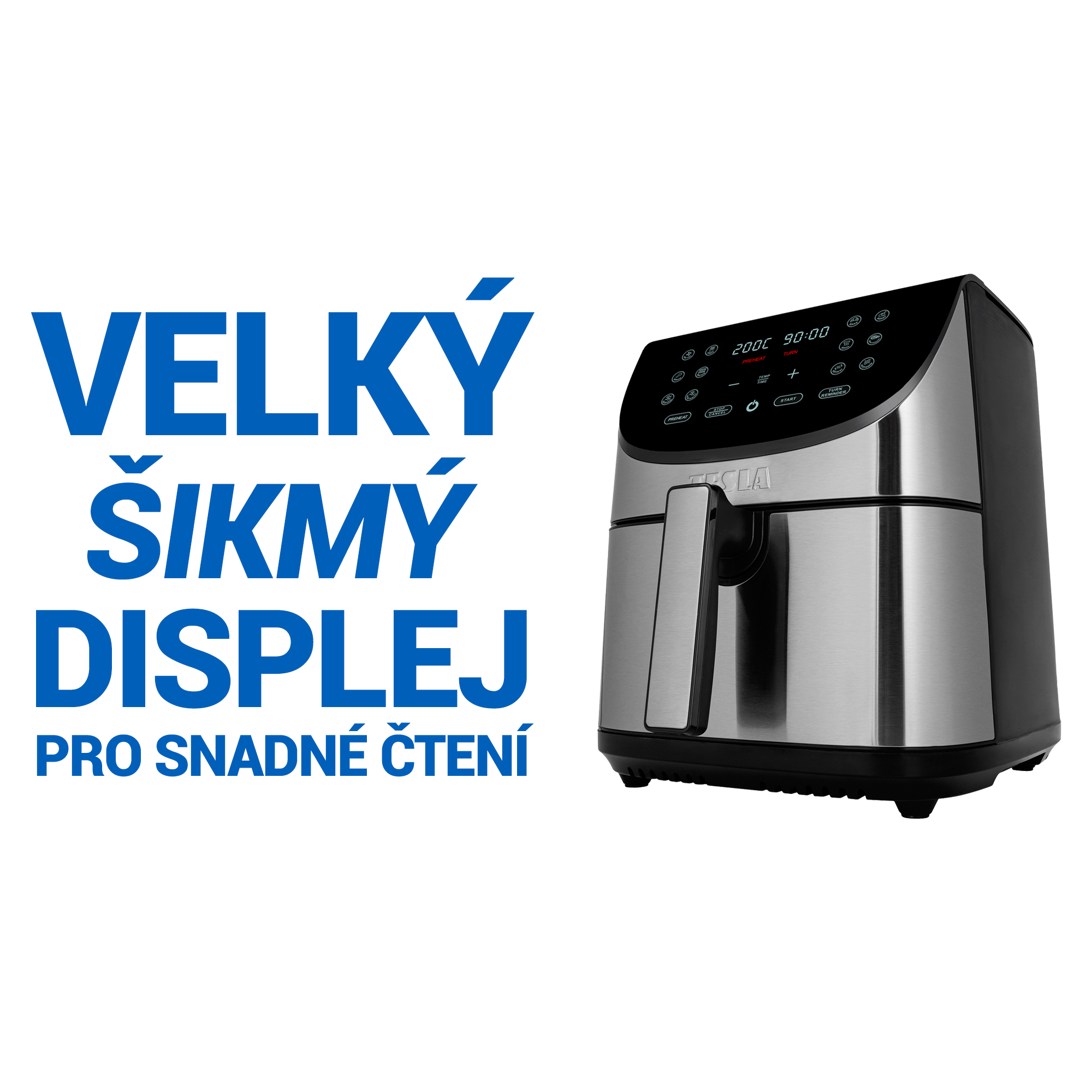 Máte rádi smažená jídla, ale bojíte se, že jsou nezdravá? S horkovzdušnou fritézou TESLA už nemusíte řešit zdraví škodlivé přepálené oleje ani jídlo nasáknuté tukem. Výsledkem jsou vaše hranolky, kuře nebo řízek připravené tak, jak je máte rádi – křupavé navenek a vláčné uvnitř.