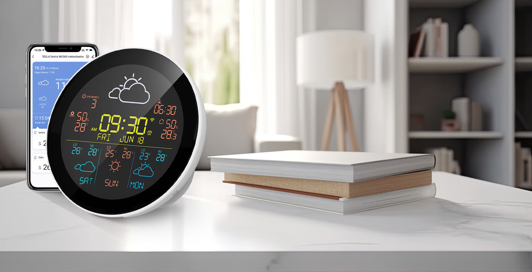 S chytrou meteostanicí TESLA Device MS360 už nikdy nebudete zaskočeni počasím. Díky externímu senzoru a WiFi připojení budete mít vždy po ruce aktuální informace o teplotě a vlhkosti jak uvnitř vašeho domova, tak i venku. Hlavní stanice vám zobrazí aktuální počasí v místě, kde se nachází, a dále detailní informace o vnitřním prostředí. Naměřené údaje z externích senzorů si pak prohlédnete v přehledné mobilní aplikaci, která umožňuje sledovat až tři senzory umístěné v různých lokacích. Získáte také třídenní předpověď počasí s grafikou, aktuální hodinovou předpověď a detailní informace o východu a západu slunce a UV indexu. Stanice TESLA Device MS360 je ideálním pomocníkem pro všechny, kteří chtějí mít dokonalý přehled o počasí ať už se nachází kdekoliv. Díky jednoduché instalaci a intuitivnímu ovládání ji zvládne používat každý.