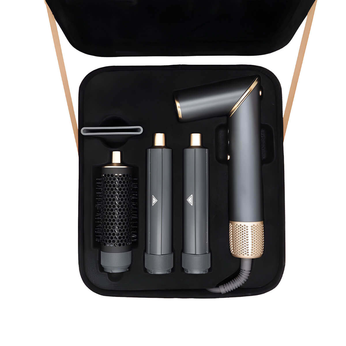 Fén se přizpůsobí vašemu stylu i náladě. Součástí balení jsou čtyři nástavce – koncentrátor pro cílené vysoušení, tvarovací kartáč pro uhlazení a dva nástavce na vlny (levý a pravý) pro přirozené natočení vlasů proudem vzduchu. Bez složité manipulace tak snadno vytvoříte hladký účes, objem i jemné vlny – jedním přístrojem, bez nutnosti dalších pomůcek.