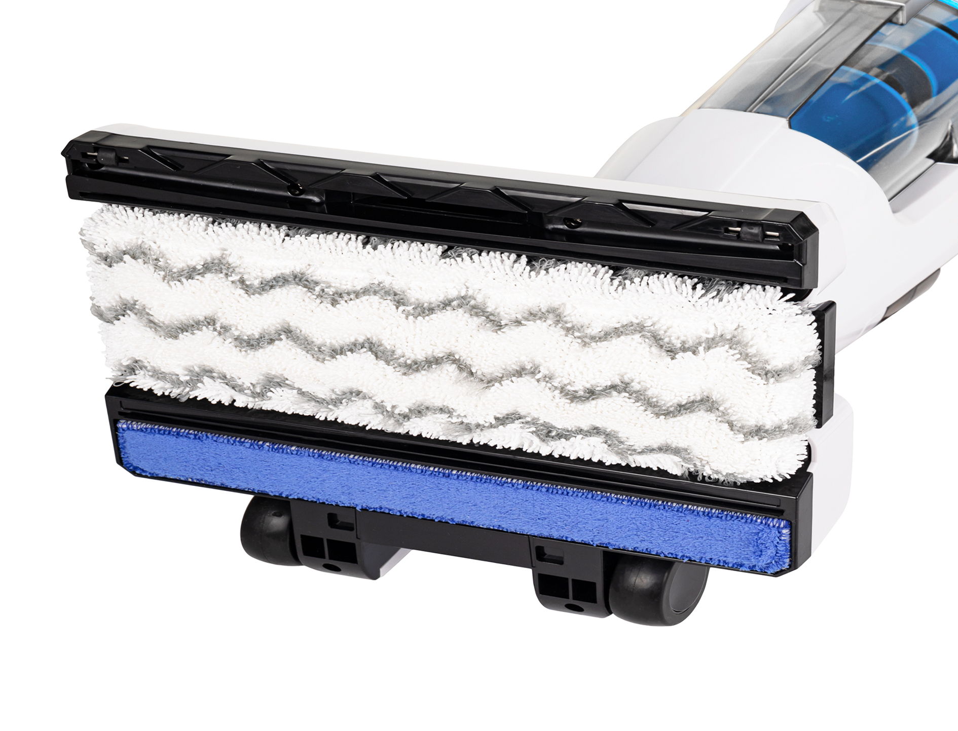Pokud potřebujete jen rychle uklidit drobky po snídani, stačí použít režim vysávání. Pro důkladnější čistění jednoduše přepínejte mezi vysáváním a parním mopem nebo použijte oba režimy současně.