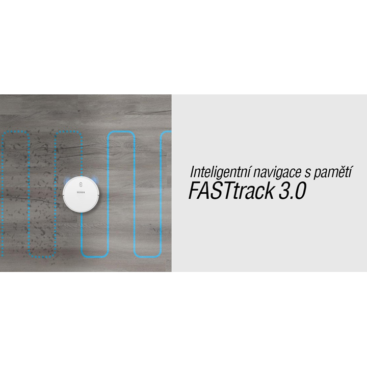 Dokonale rychle uklidí celou domácnost, protože je vybaven nejnovější inteligentní navigací FASTtrack 3.0. Snadno překonává nízké přechodové lišty, je vybaven množstvím snímačů a přizpůsobí se velikosti místností.
