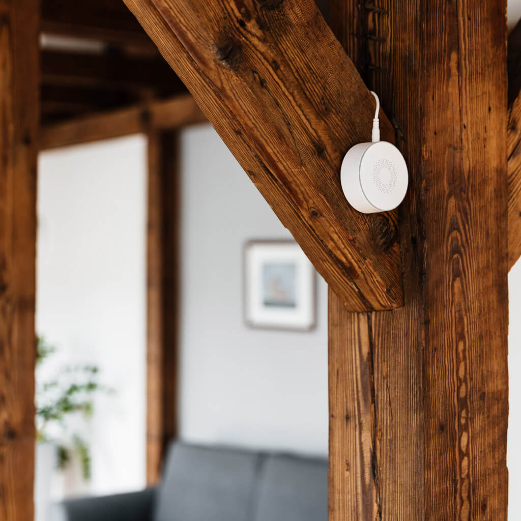 Díky minimalistickému provedení zapadne do každého interiéru. Výhodou je snadná instalace pomocí oboustranné lepicí pásky či dvou přiložených šroubků. Sirénu tak můžete umístit kamkoli poblíž zásuvky.
