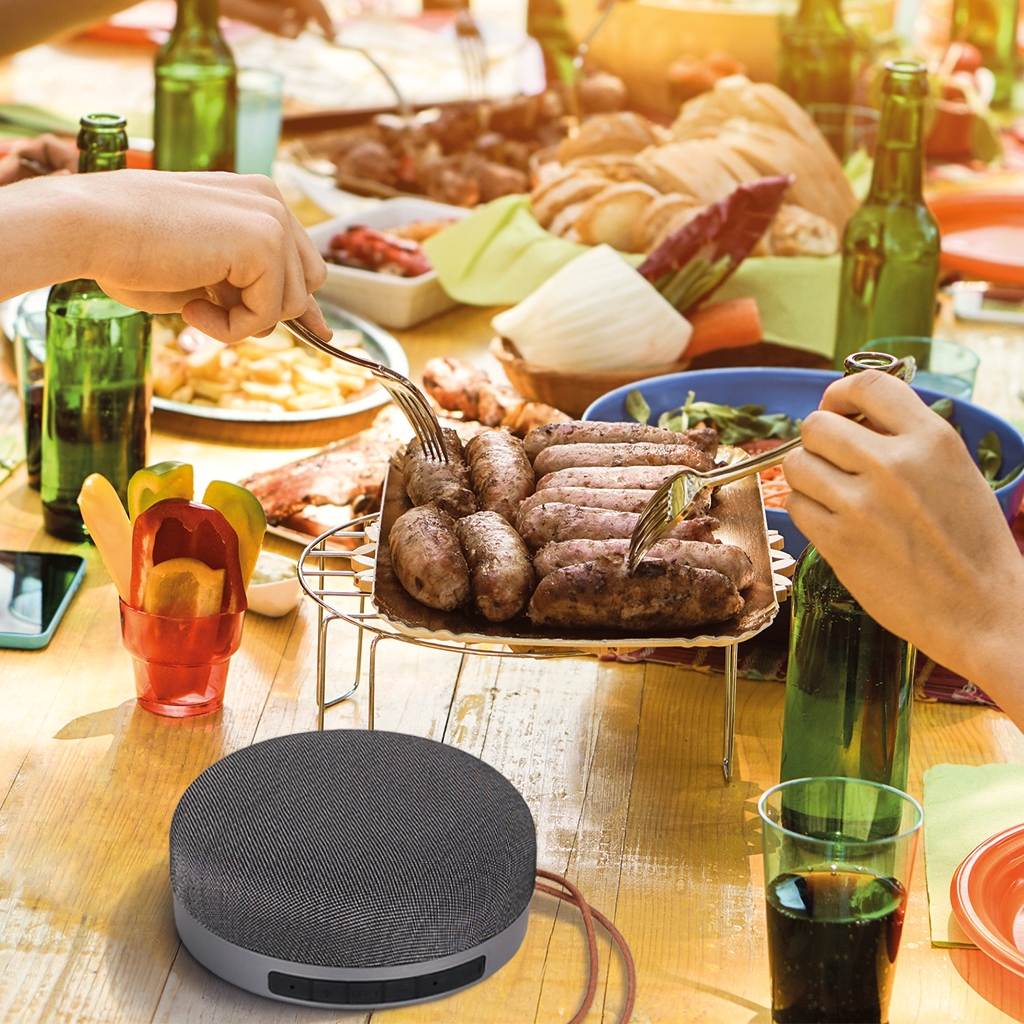 Žádný problém. Tento bezdrátový reproduktor lze využít nejen pro poslech hudby nebo FM rádia, ale díky zabudovanému mikrofonu a reproduktoru o výkonu